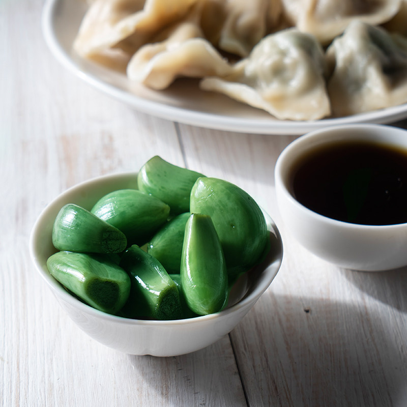 腊八蒜绿蒜自制醋泡糖蒜农家新鲜大蒜翡翠绿腊八蒜袋装 400g