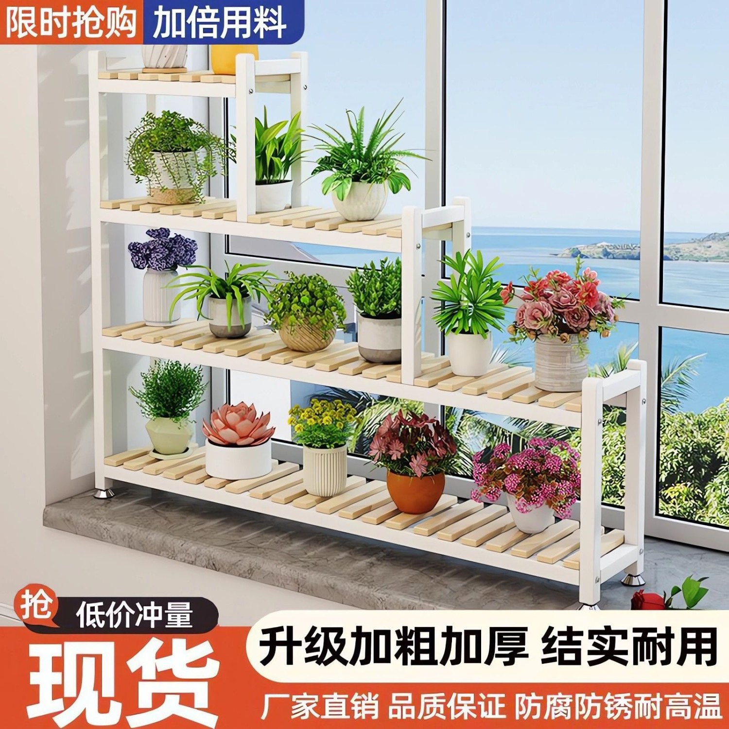 阳台花架置物架飘窗花架多层室内铁艺花架窗台花盆架多肉实木花架