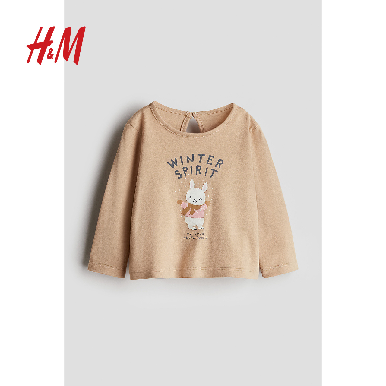 HM童装女婴T恤秋季可爱印花圆领长袖打底上衣1261113