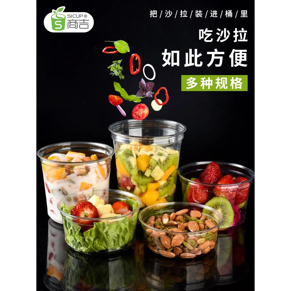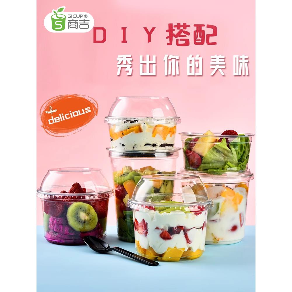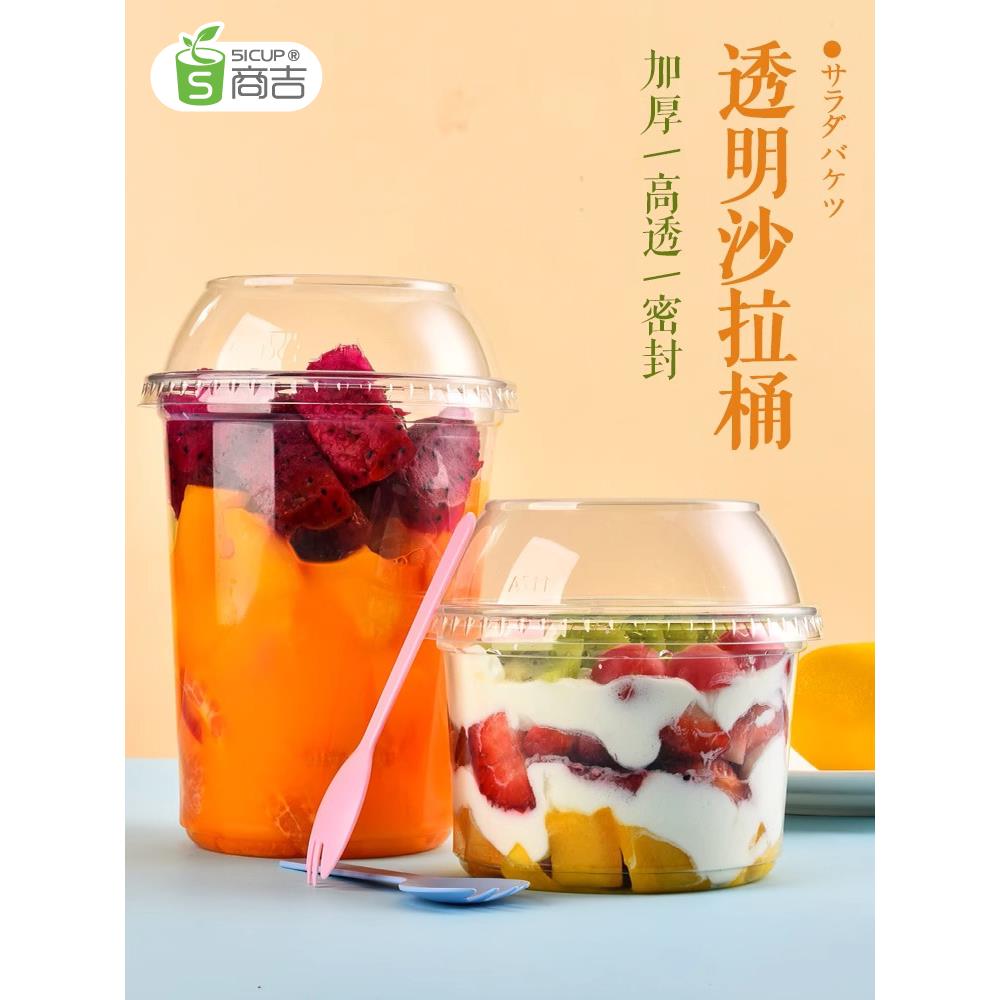 上海商吉水果捞杯千层盒一次性塑料碗沙拉西瓜桶打包盒圆形包装盒