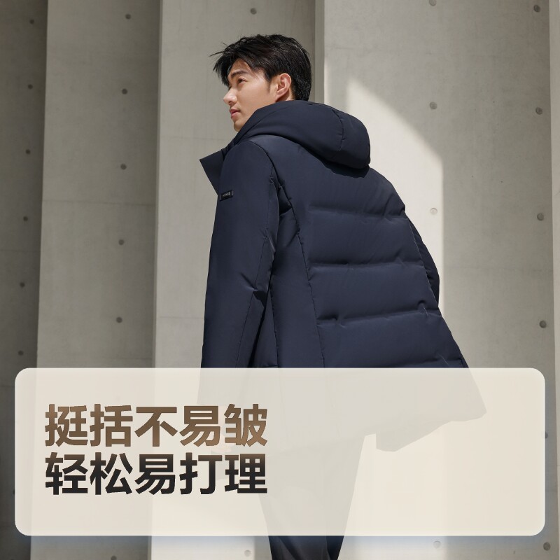 【90鹅绒】波司登羽绒服男款冬季新款商务风中长款直充防钻绒