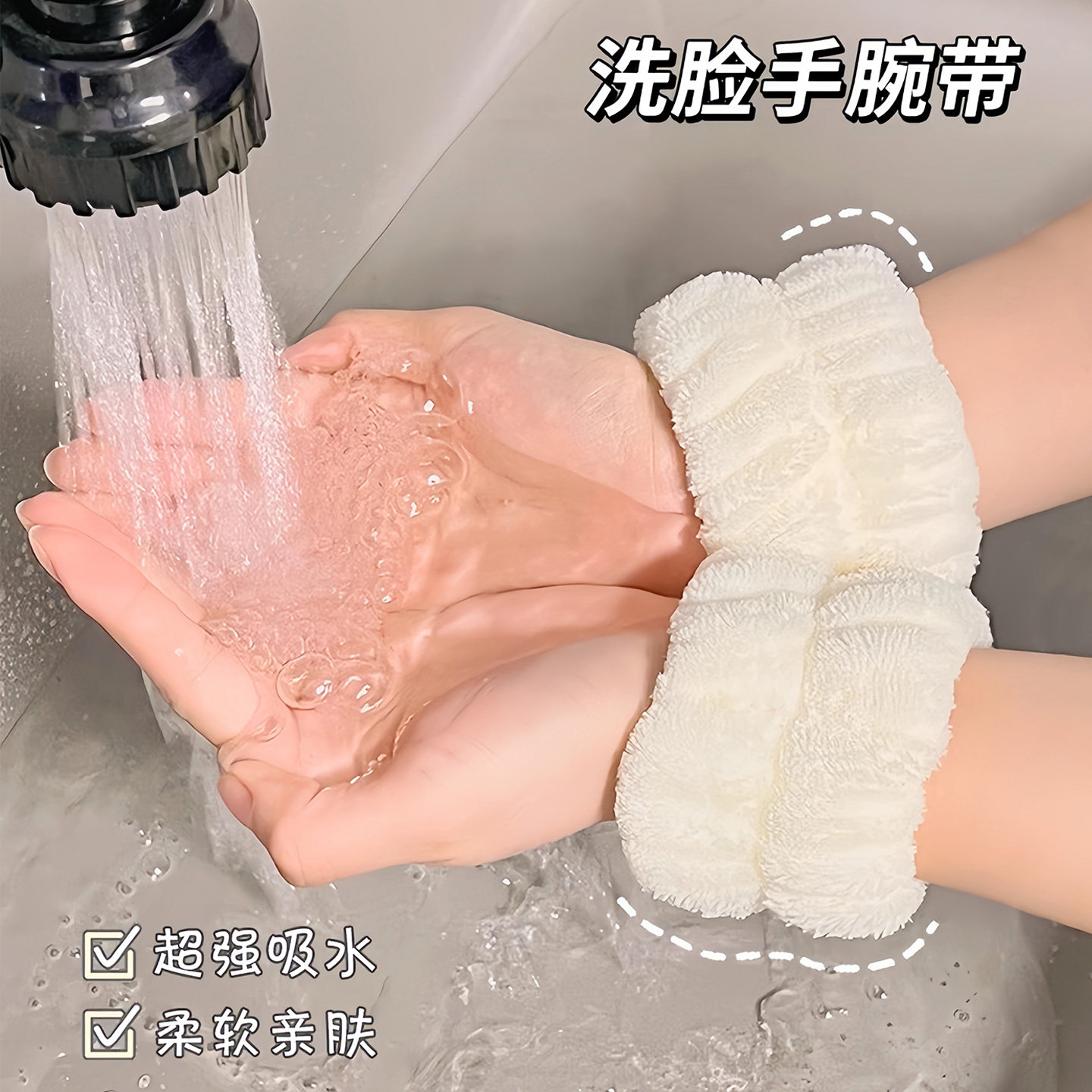 洗脸防湿三件套手腕带发带防溅水袖口手环洗漱发箍防湿袖吸水手巾