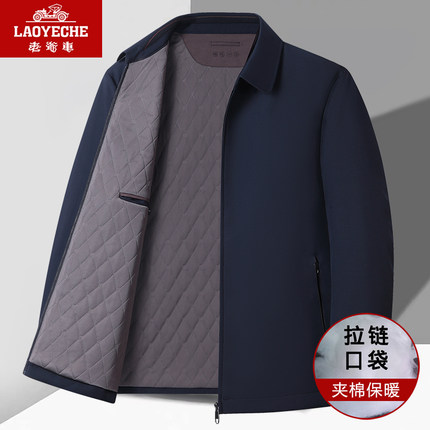 爸爸冬装翻领外套秋冬季轻薄棉服中老年商务休闲棉衣中年男士棉袄