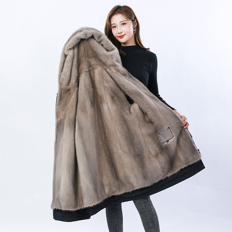 整貂皮大衣女新款派克服可拆卸水貂内胆冲锋衣冬中长款尼克服皮草