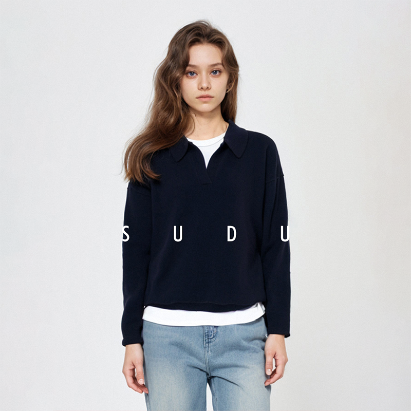 SUDU素都2025秋冬POLO领叠叠乐高智纯色极简Miu风针织衫宽松上衣