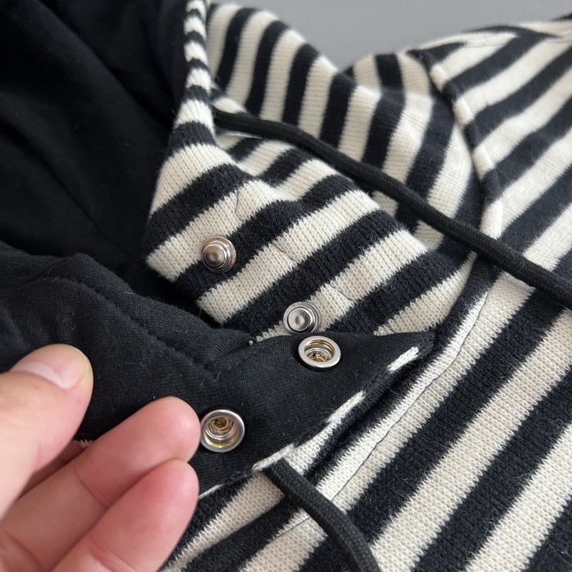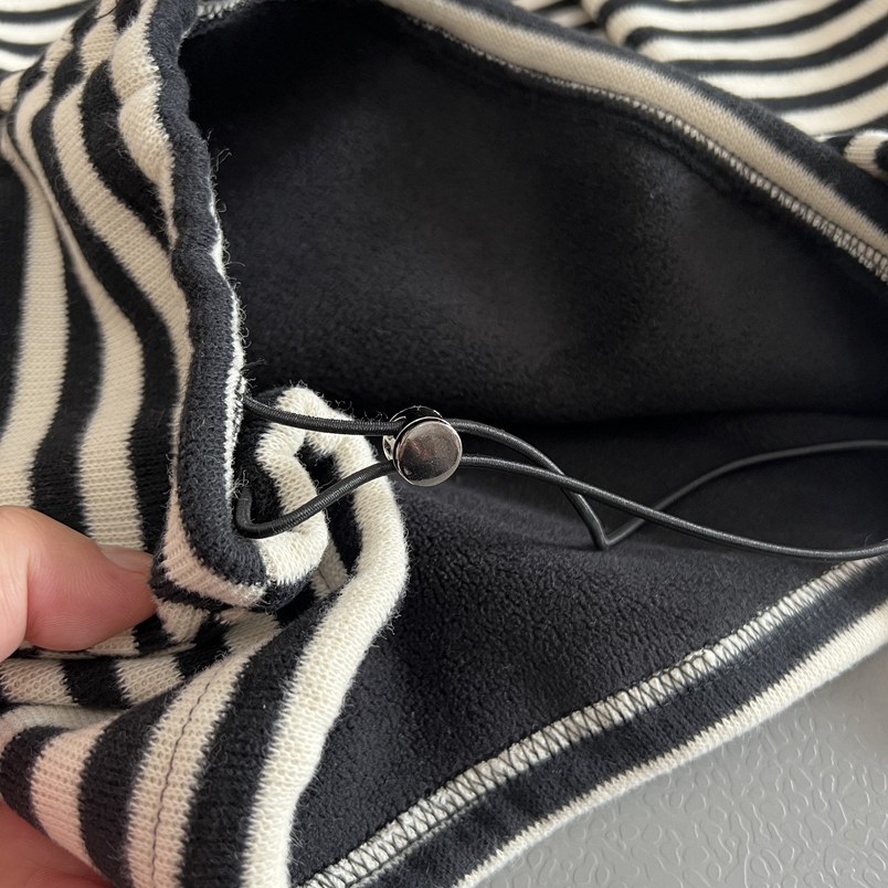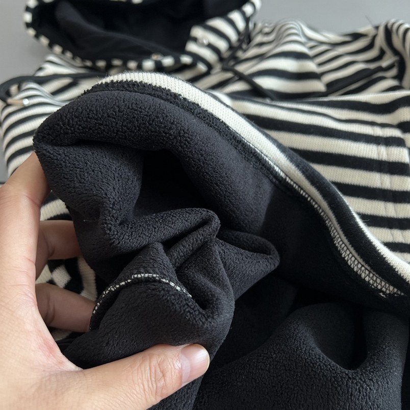 加绒加厚宽松韩版条纹连帽卫衣女宽松长袖半拉链保暖上衣秋冬新款