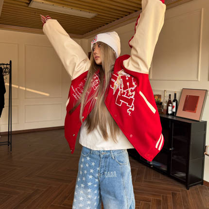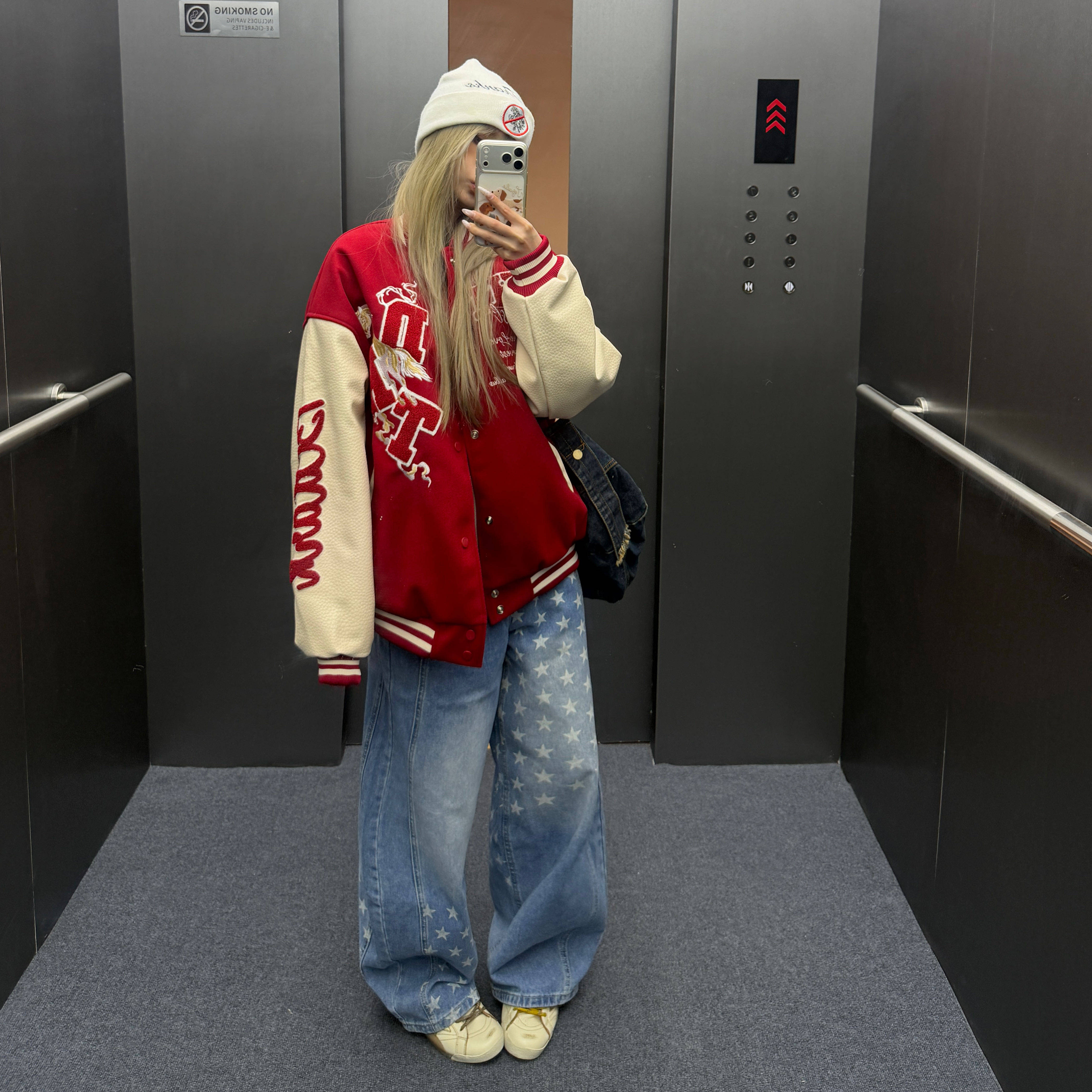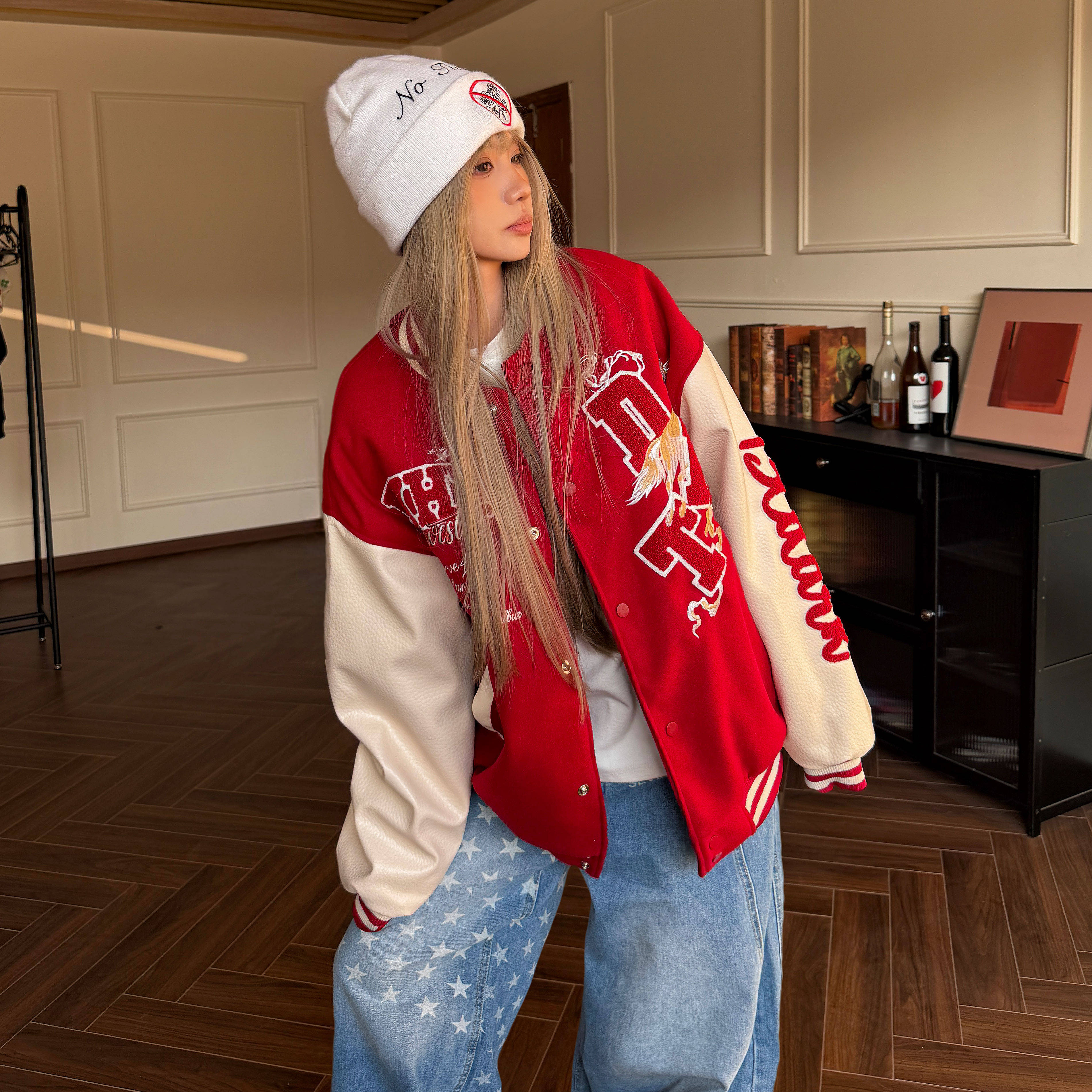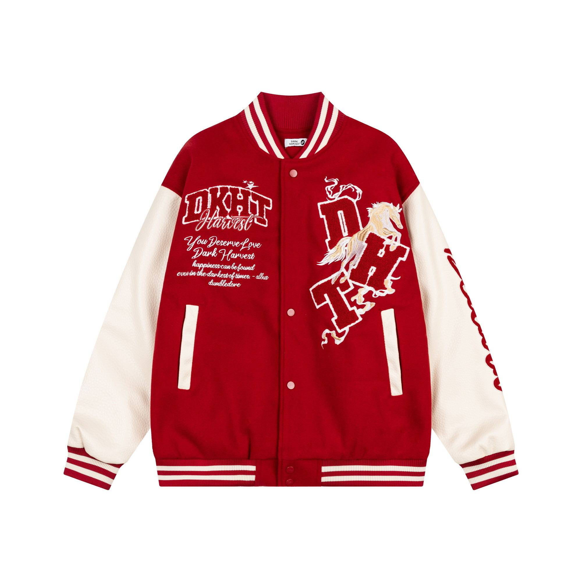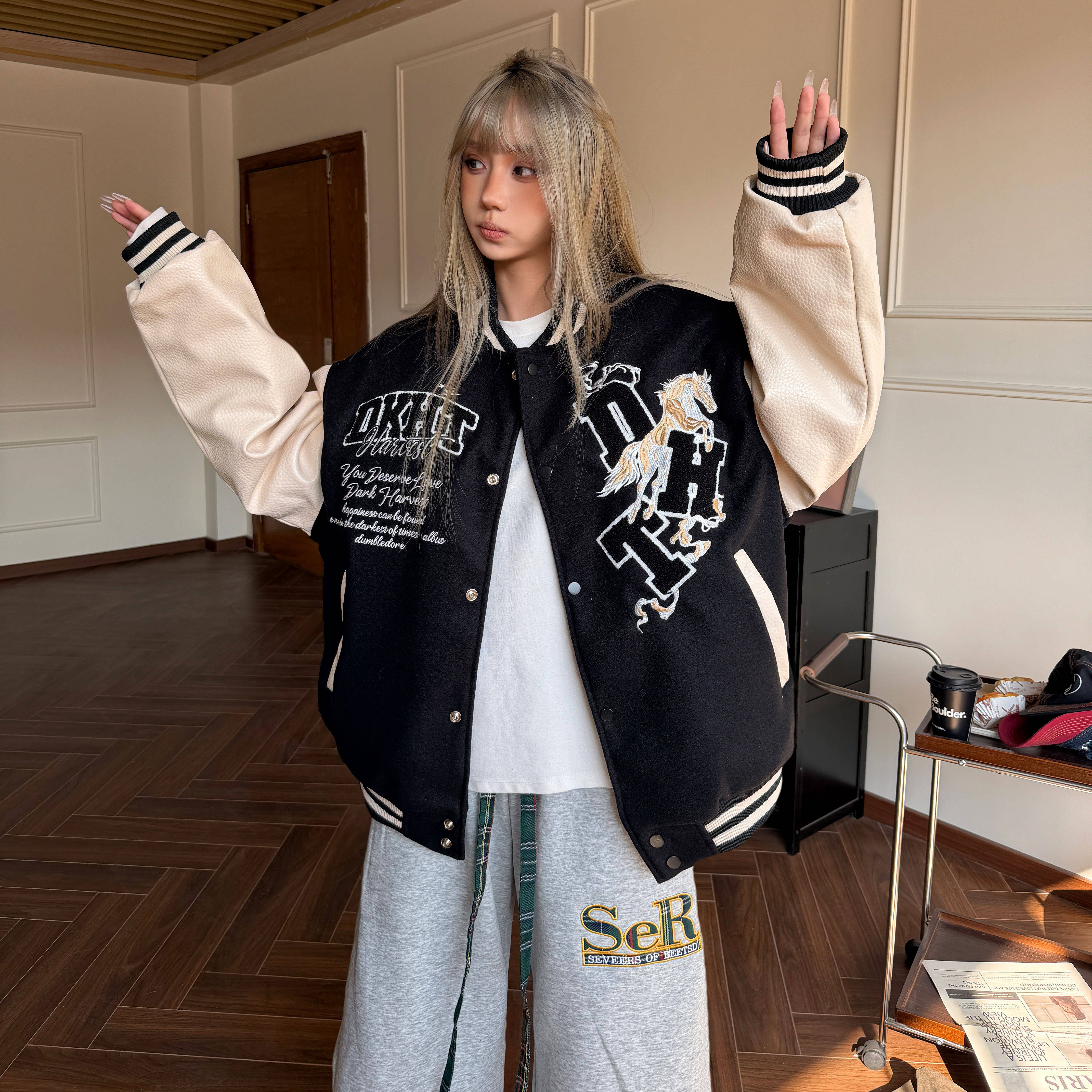 Amoeba美式复古马年限定重工刺绣植绒棒球服夹克男女春季新款外套