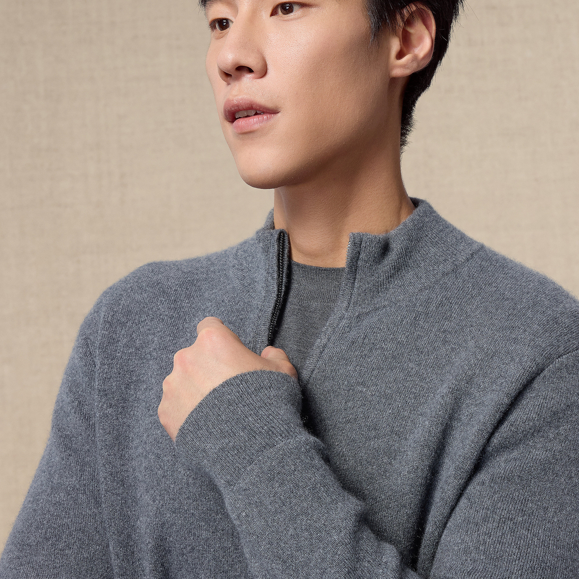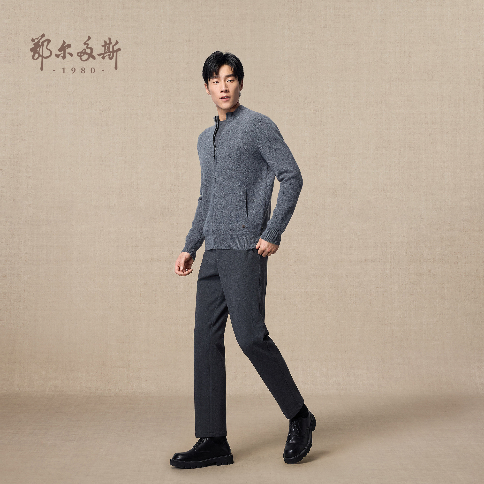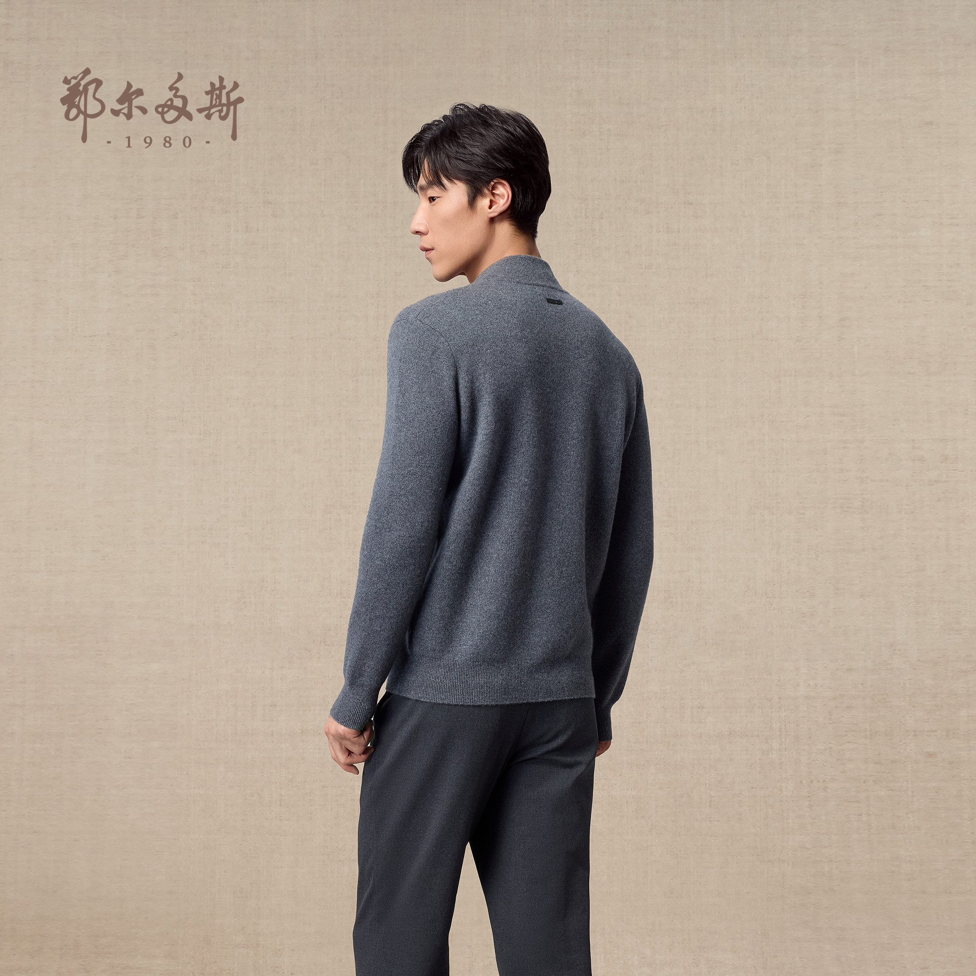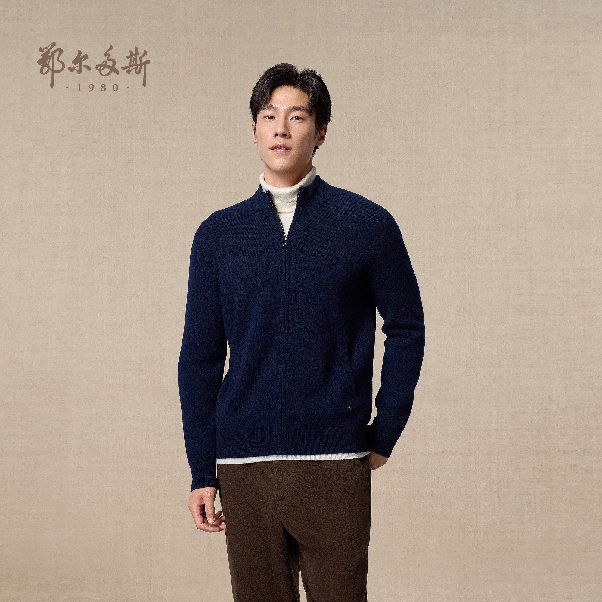 鄂尔多斯1980 男装半高领双提加厚羊绒衫秋冬拉链保暖针织开衫