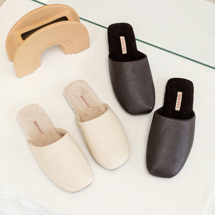 云团冬季情侣高级感皮棉拖鞋女PU皮室内加绒防滑静音居家鞋男家用