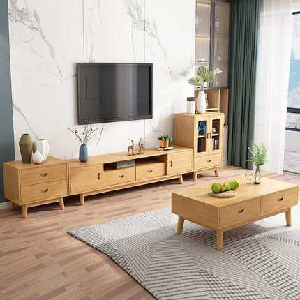 北欧实木茶几电视柜组合现代简约小户型组装家用客厅储物收纳地柜