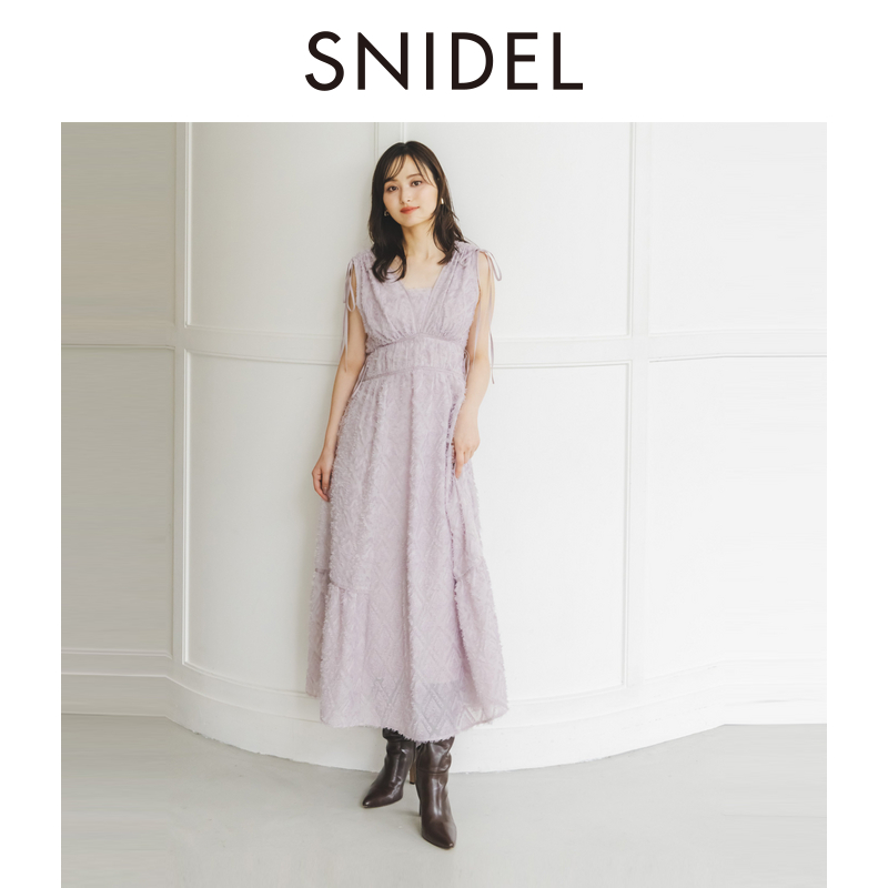 SNIDEL2025秋冬新品时尚V领抽绳收腰植绒无袖连衣裙SWFO254288