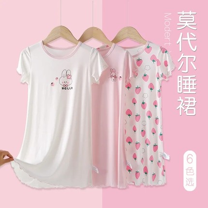 女童睡裙夏款公主儿童莫代尔睡衣薄款家居服女宝宝冰丝连衣裙宽松