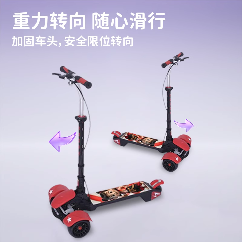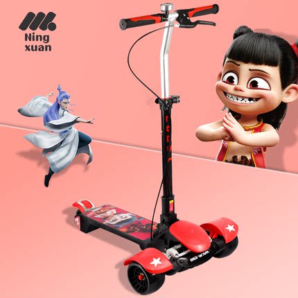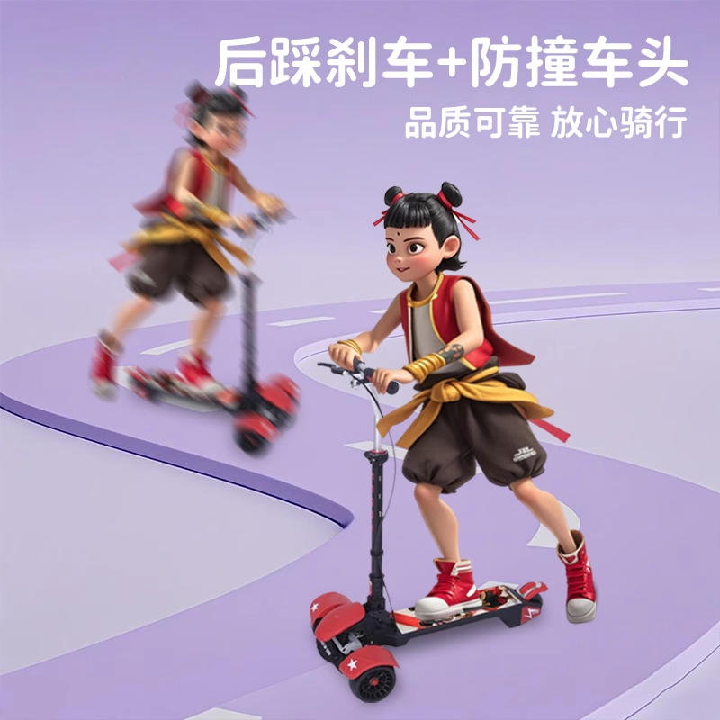 2025新款哪吒滑板车6到12岁溜车音乐灯光折叠平衡踏板防侧翻8大童