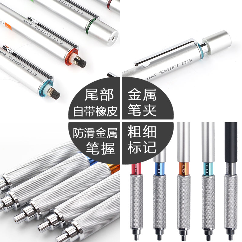 包邮日本进口三菱uni绘图活动自动铅笔0.3/0.5/0.7/0.9mm学生用美术活动铅M5-1010半金属低重心铅笔绘画素描