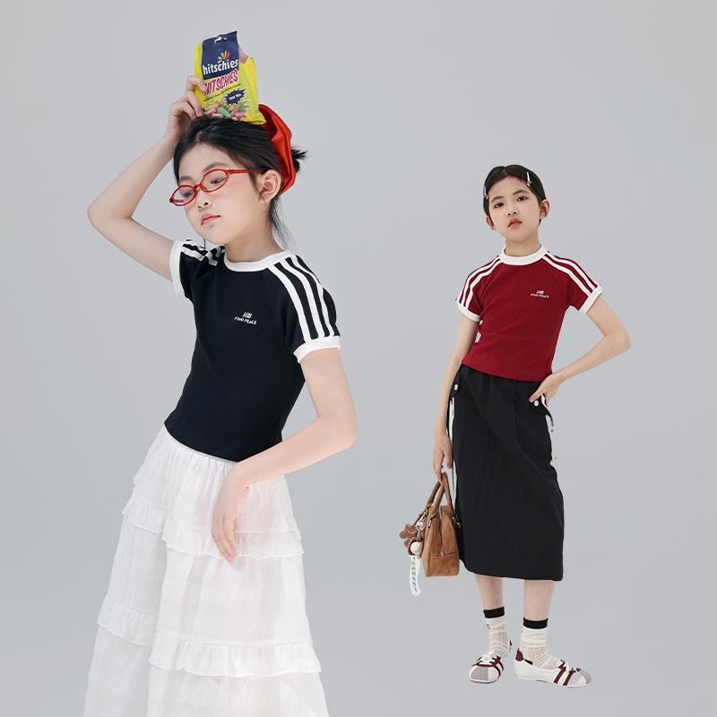 艾上朵女童短袖t恤2025夏装新款儿童洋气修身短款T童装简约上衣潮