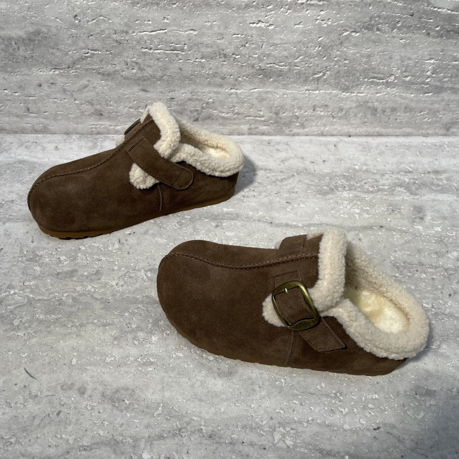 魔术贴加绒保暖外穿包头拖穆勒鞋