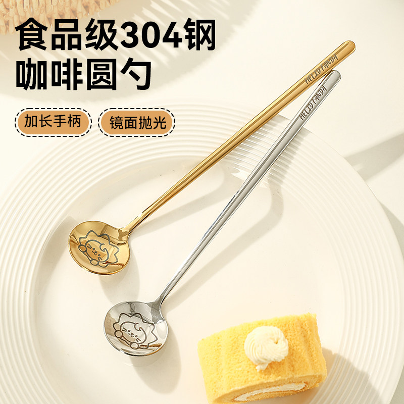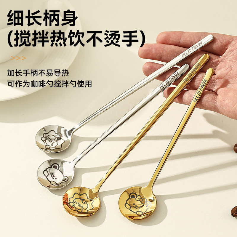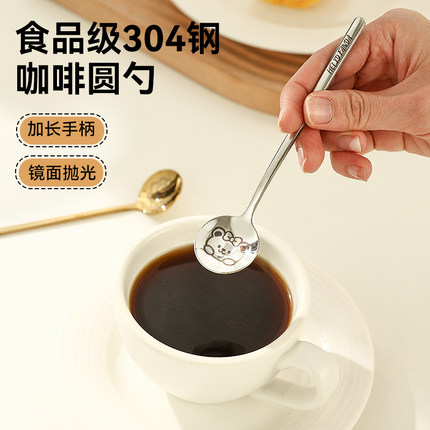 304不锈钢长柄咖啡圆勺搅拌勺子甜品蜂蜜勺小匙子圆头高颜值精致