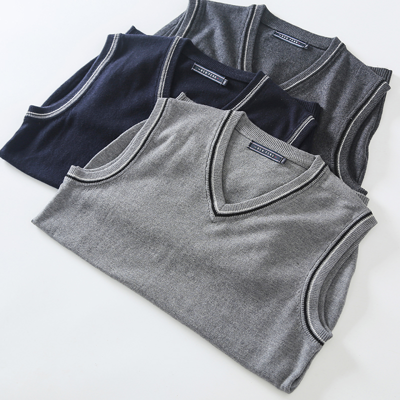 绵羊毛!领口撞色!细腻柔软!秋冬季男士V领针织打底衫毛衣马甲