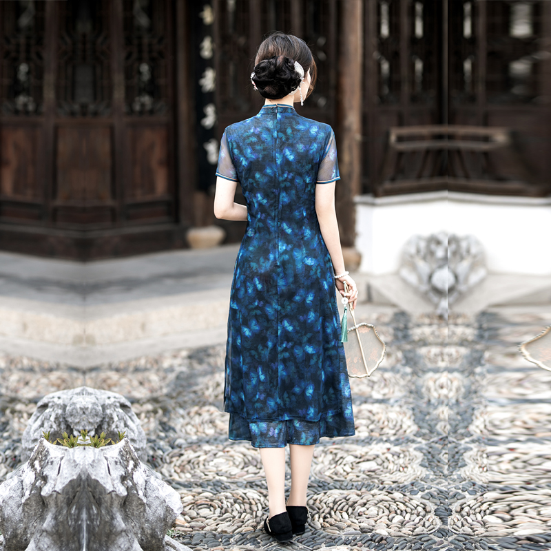 奥黛旗袍改良连衣裙妈妈日常夏装