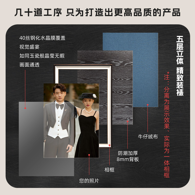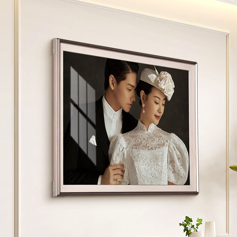 高定婚纱照相框放大挂墙打印40寸结婚照全家福相片高清微喷定制