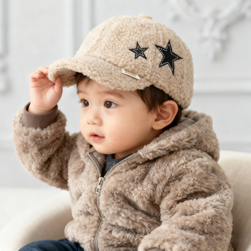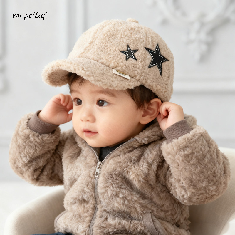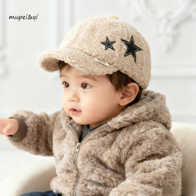宝宝帽子秋冬季鸭舌帽男童女婴幼儿羊羔毛加厚棒球帽韩版保暖防风