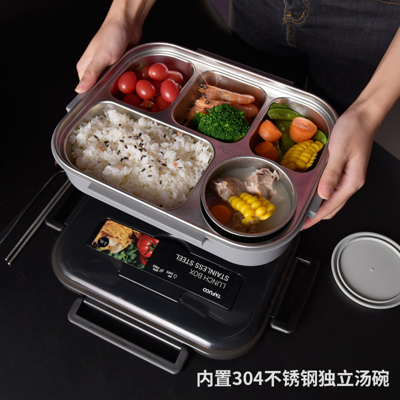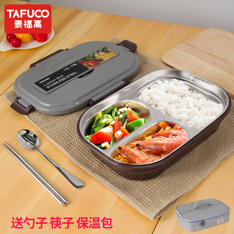 日本泰福高不锈钢饭盒上班族学生分格餐盒初中生专用保温餐盘分隔