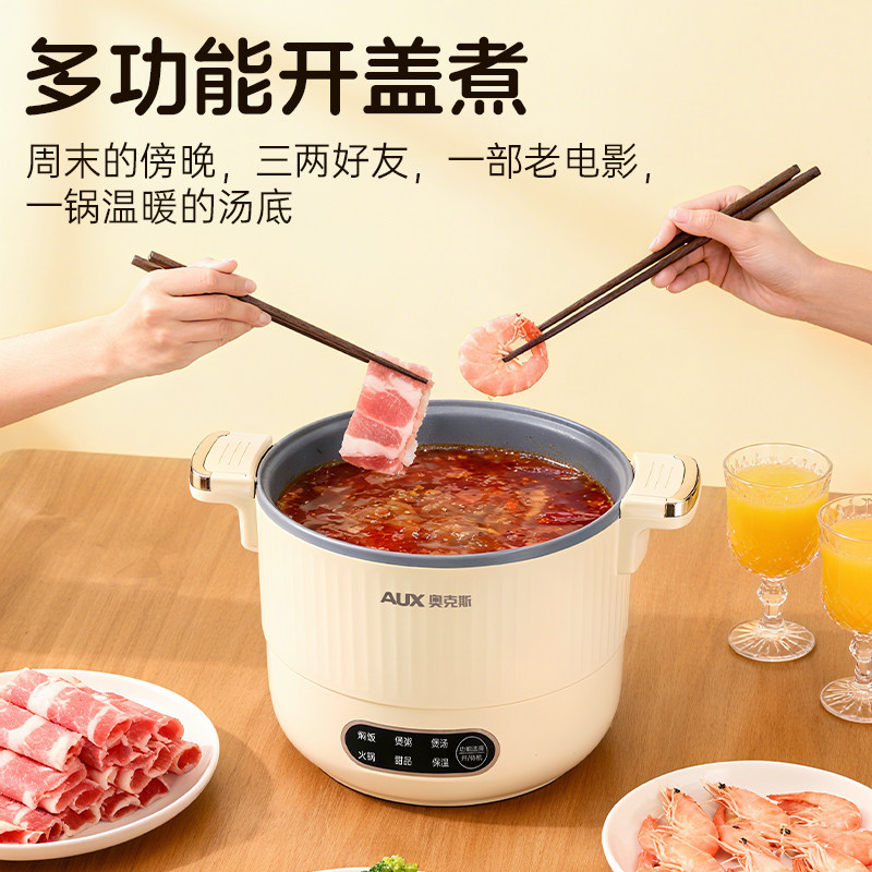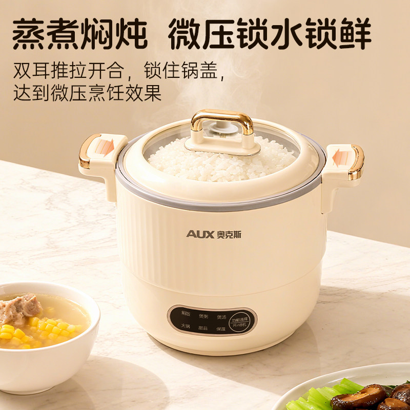 奥克斯电煮锅小型宿舍多功能一体火锅家用1到2人煮饭迷你电饭煲