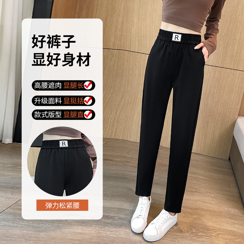 黑色休闲裤女2025秋季大码高腰显瘦哈伦小脚萝卜裤薄款运动铅笔裤