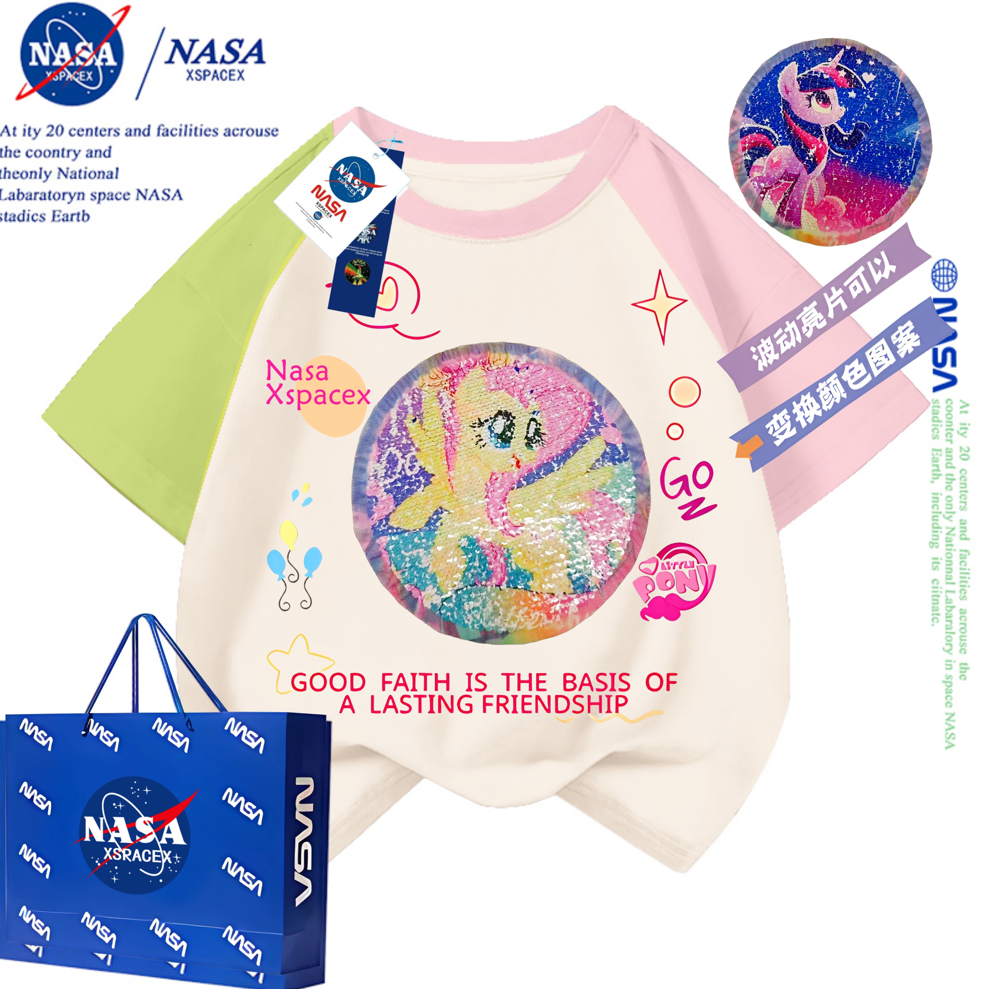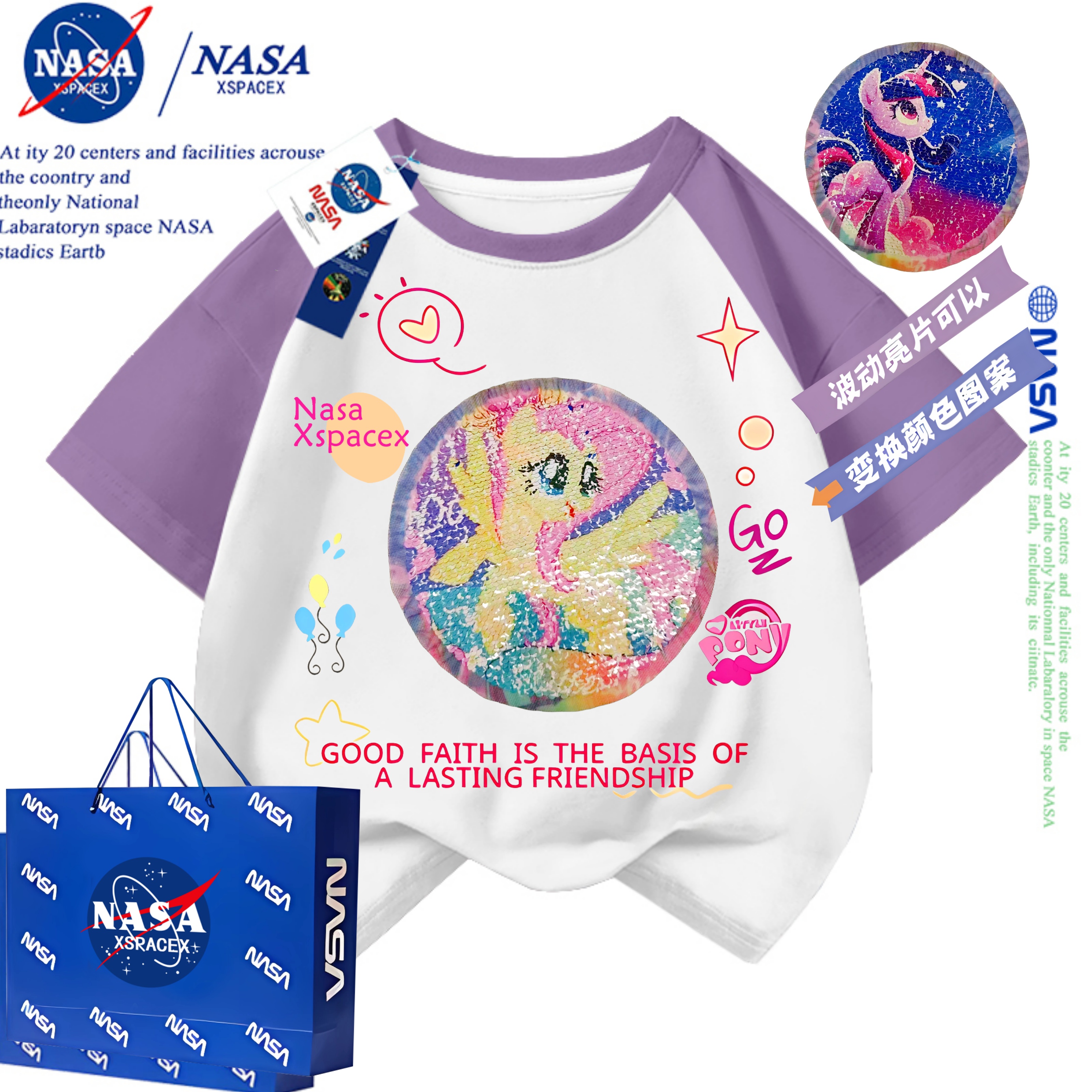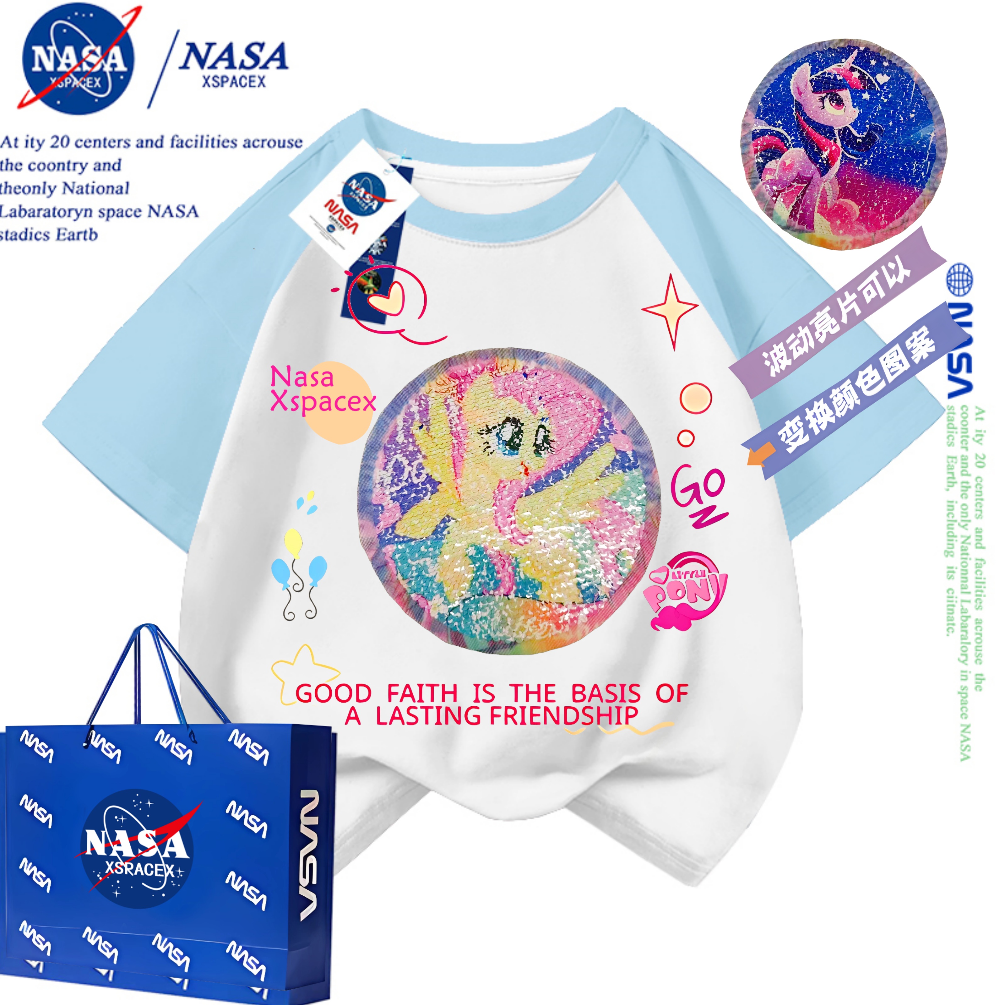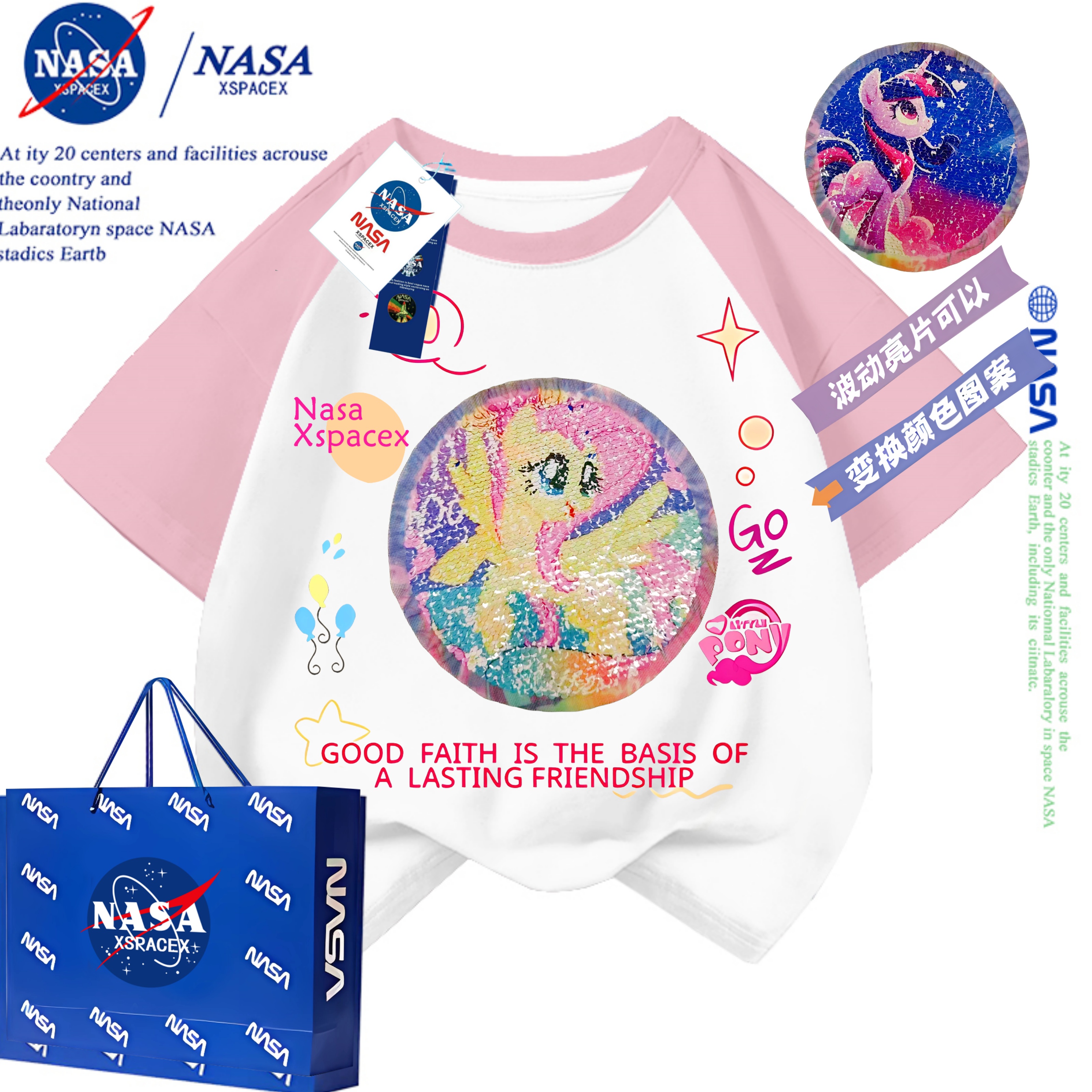 NASA联名小马宝莉纯棉短袖女童夏亮片变色t恤女孩翻转变图案上衣