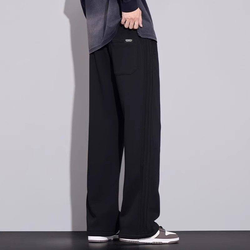 Yishion以纯官方时尚正品加绒加厚休闲裤男士秋冬季宽松直筒卫裤