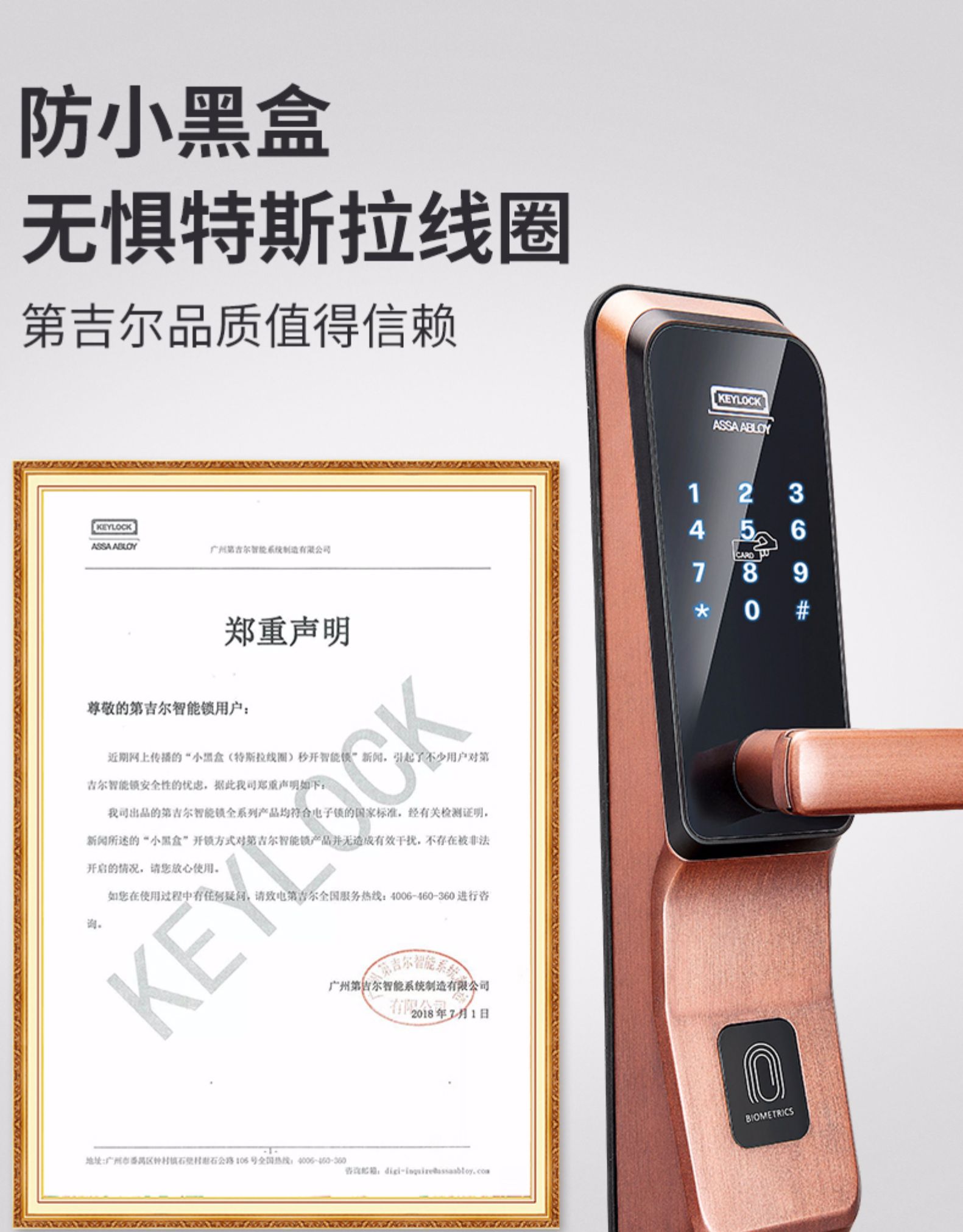 Keylock第吉尔指纹锁家用感应锁密码把手上锁磁卡锁锌合金自弹268