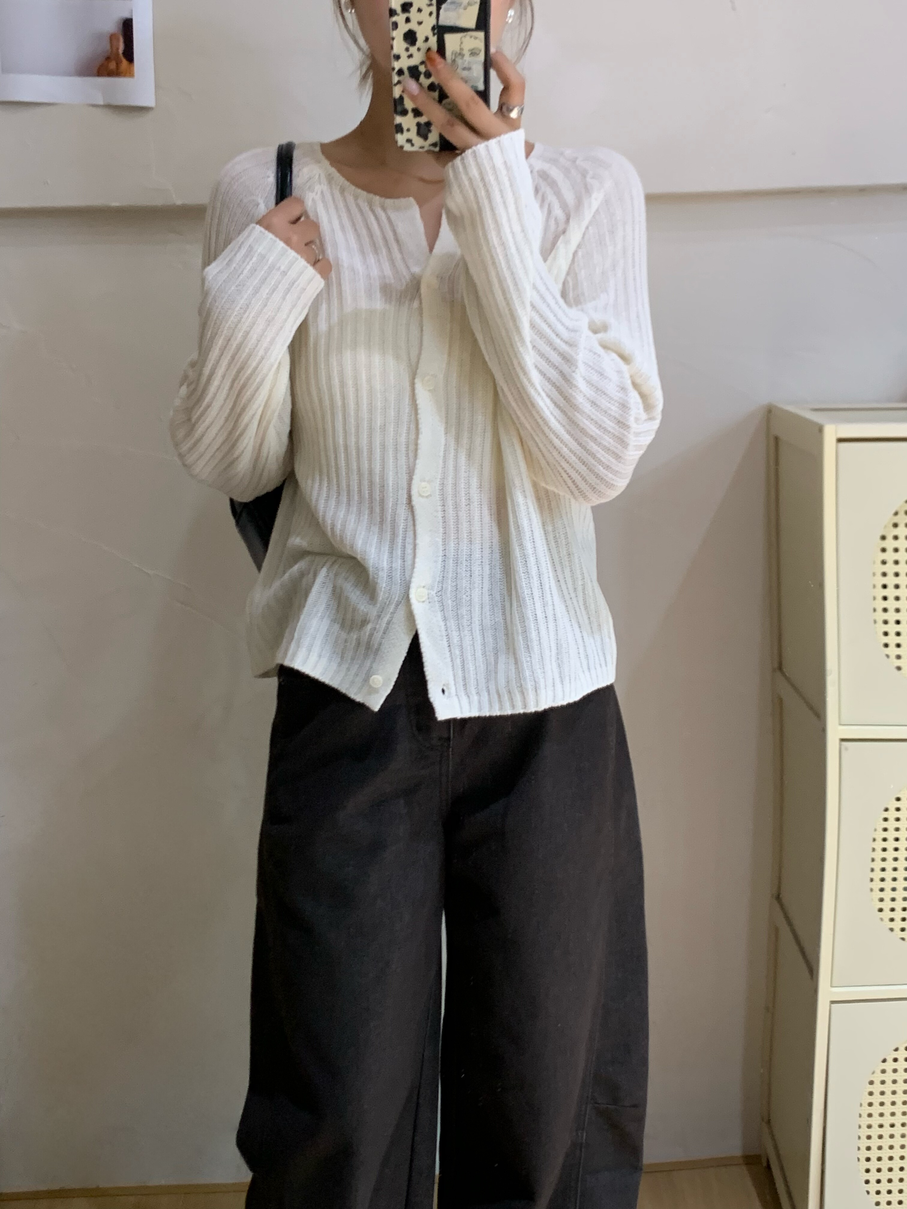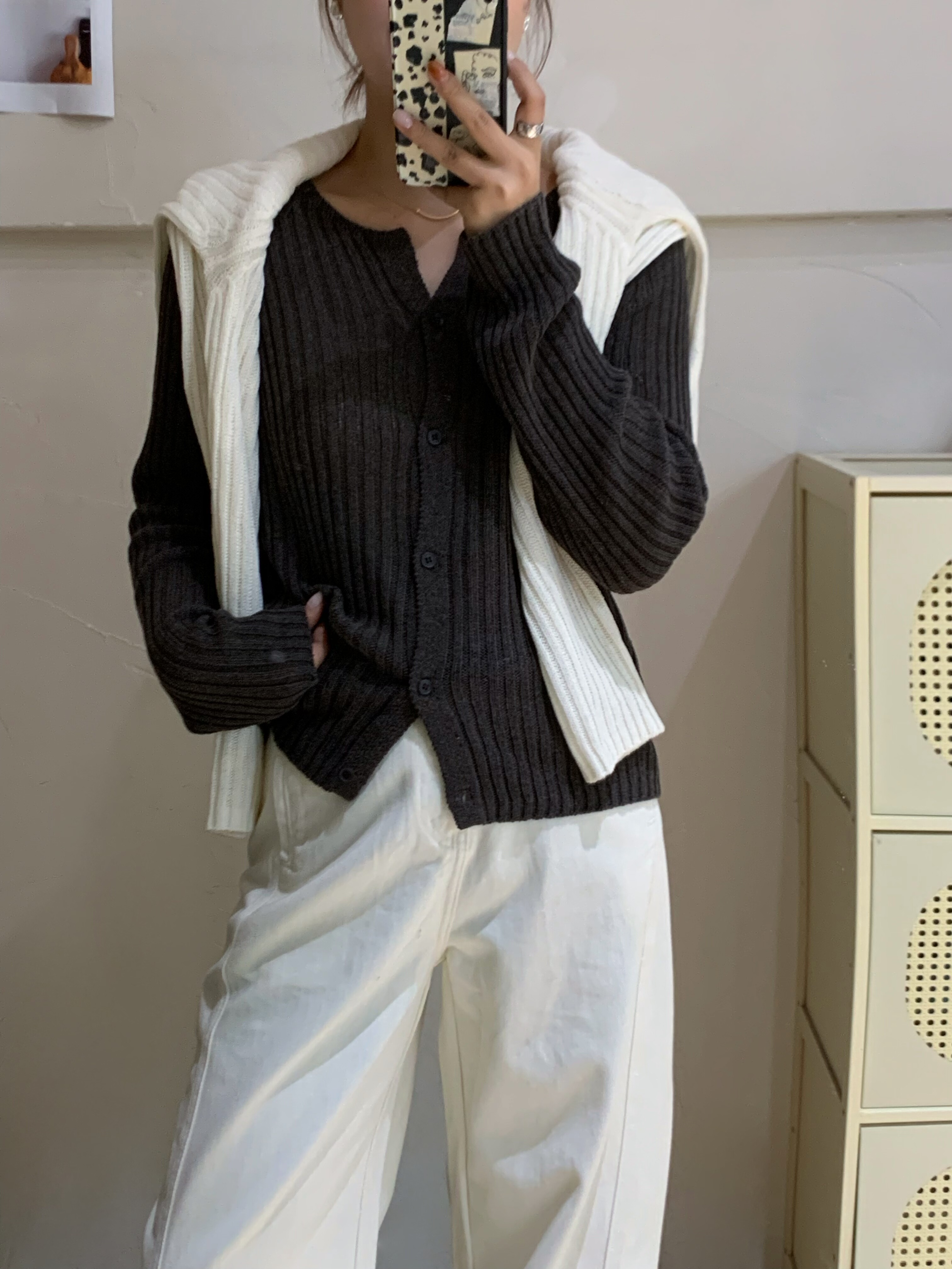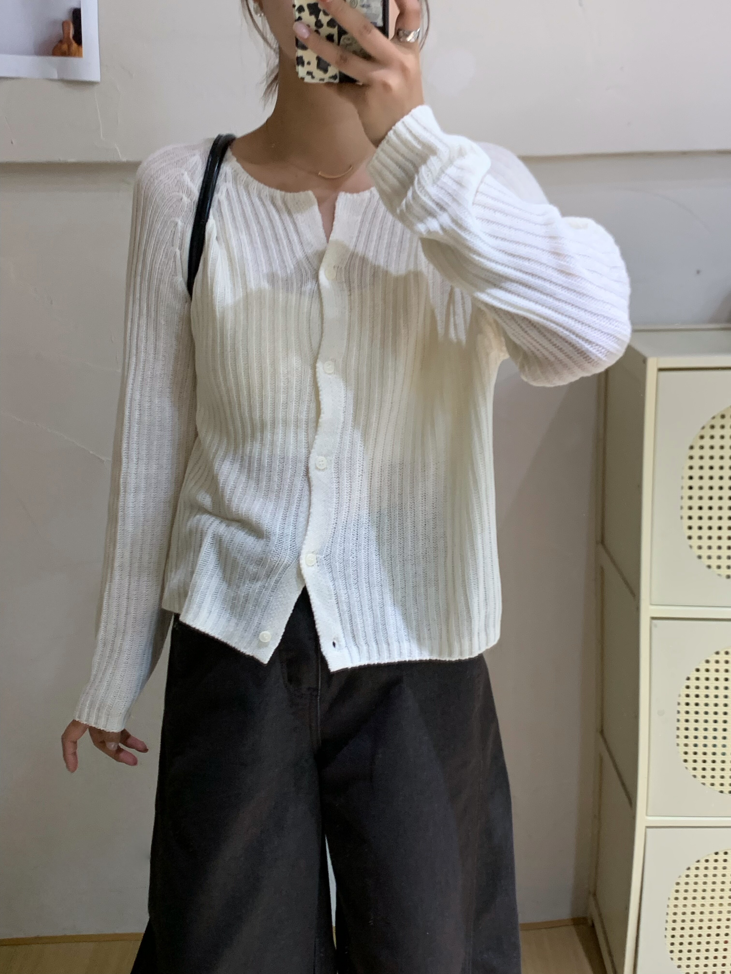 韩系本白色长袖针织开衫女2025秋季新V领时尚显瘦百搭上衣