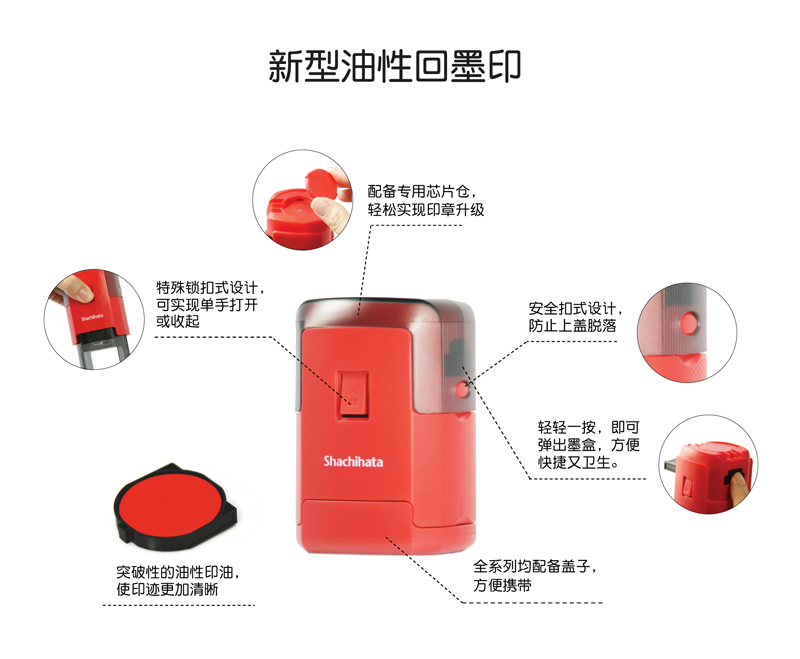 日本旗牌shachihata回墨印章印台红色印油印泥盒翻斗印章手账印台红色印台补充印油SR-2040