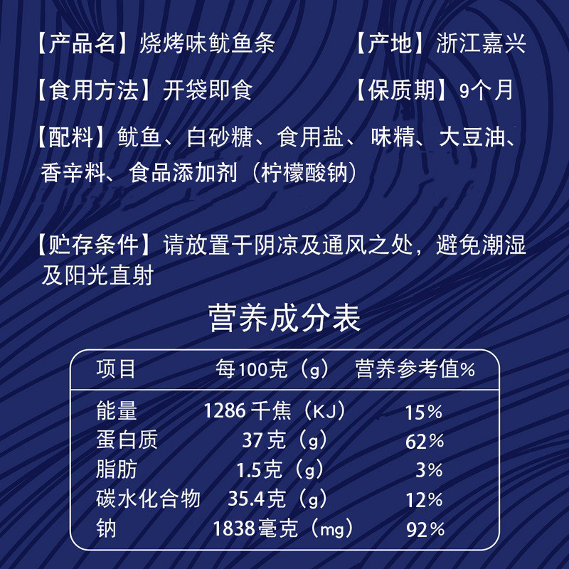 北海安滨碳烤鱿鱼条丝网红零食海味开市客高蛋白即食海鲜零食小吃