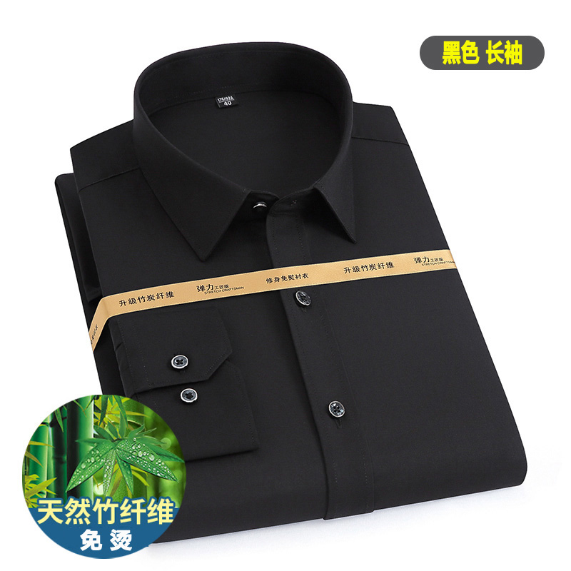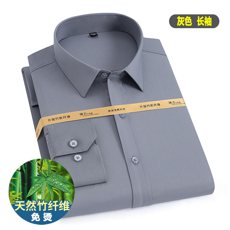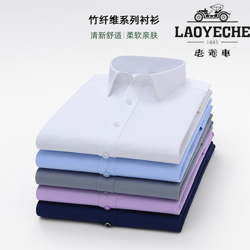 老爷车竹纤维男长袖衬衫春秋季弹力商务职业正装免烫白色衬衣防皱