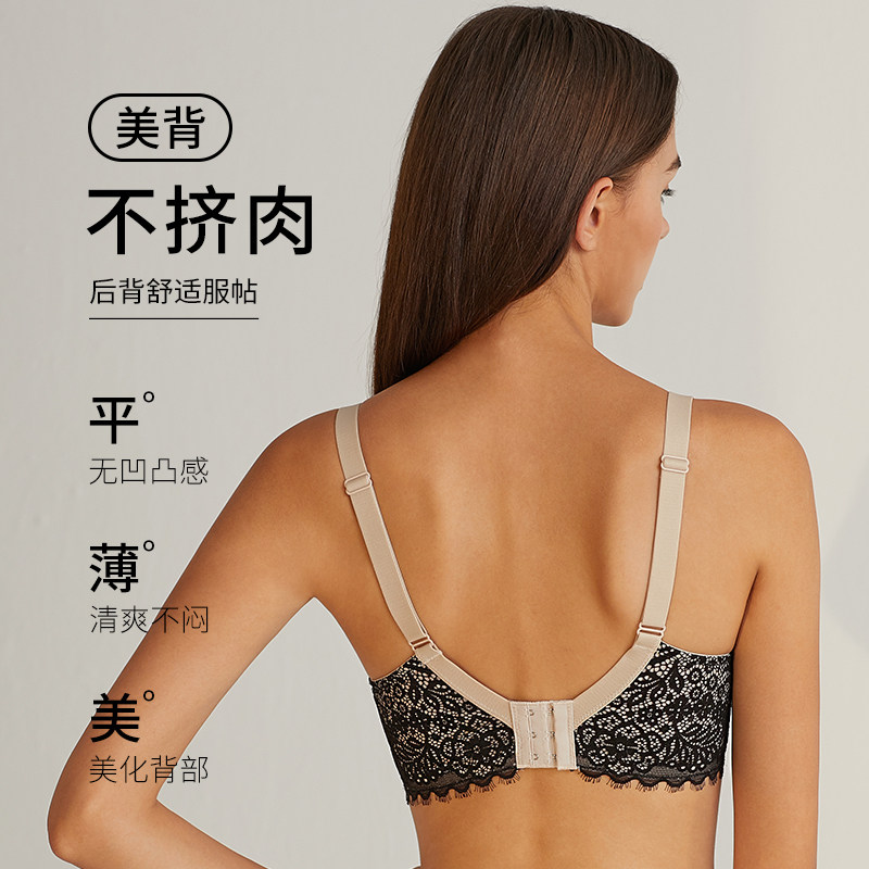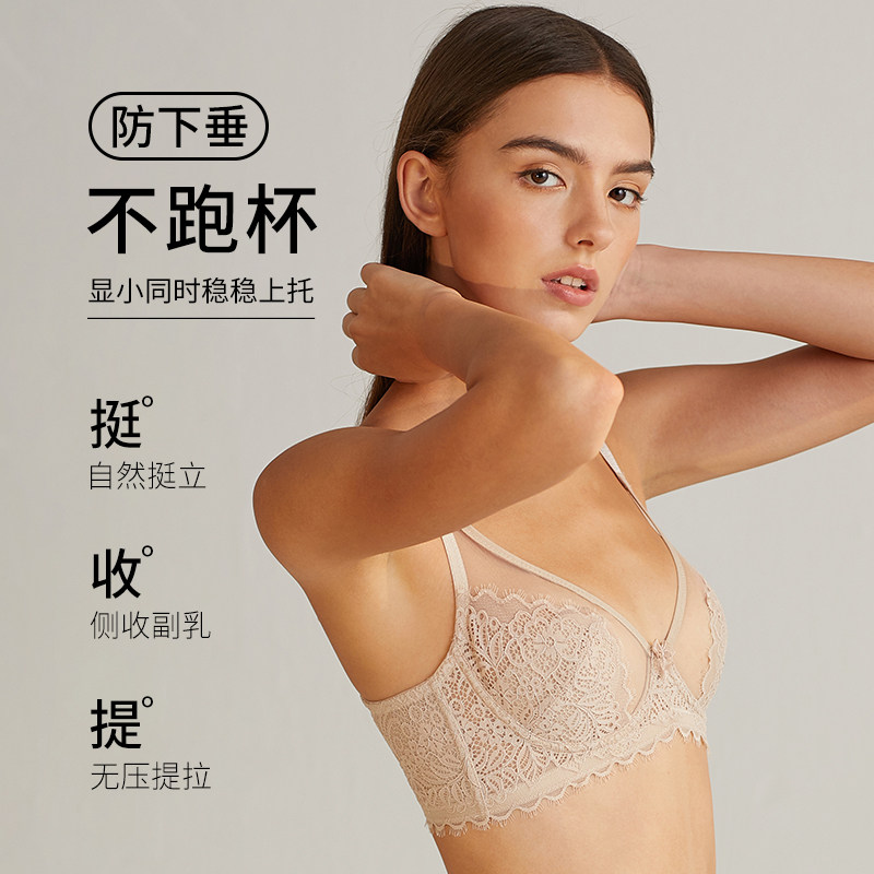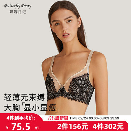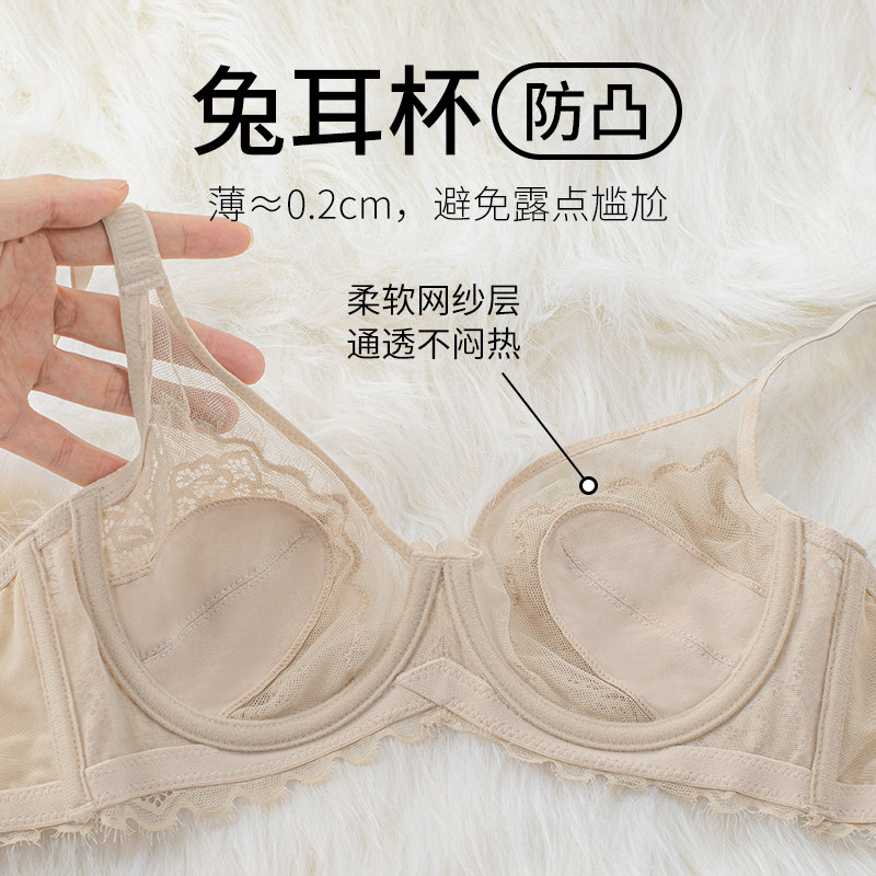 蝴蝶日记大胸显小超薄款文胸女有钢圈内衣蕾丝性感防下垂兔耳朵夏