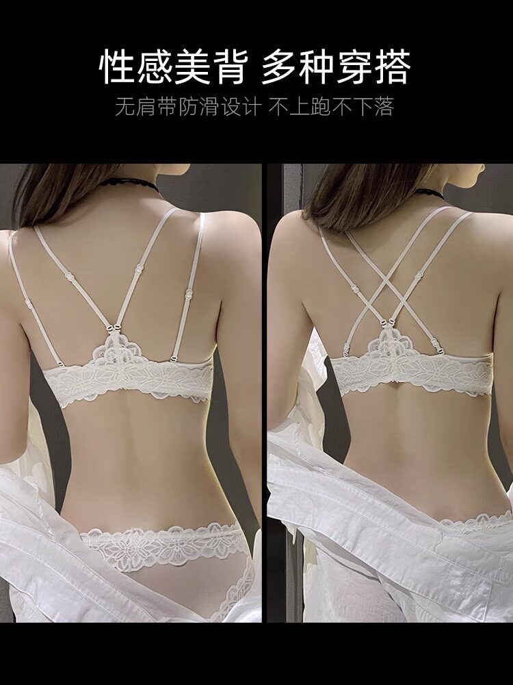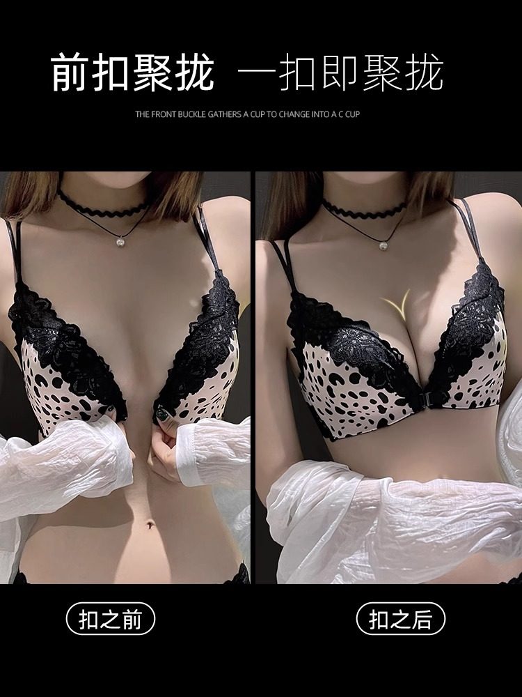 前扣文胸加厚小胸聚拢无钢圈性感前扣式胸罩白色蕾丝美背内衣女夏