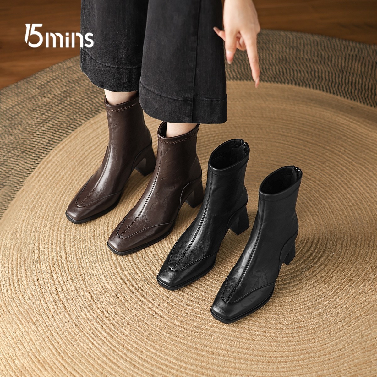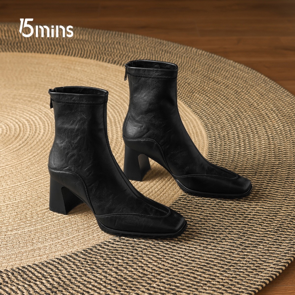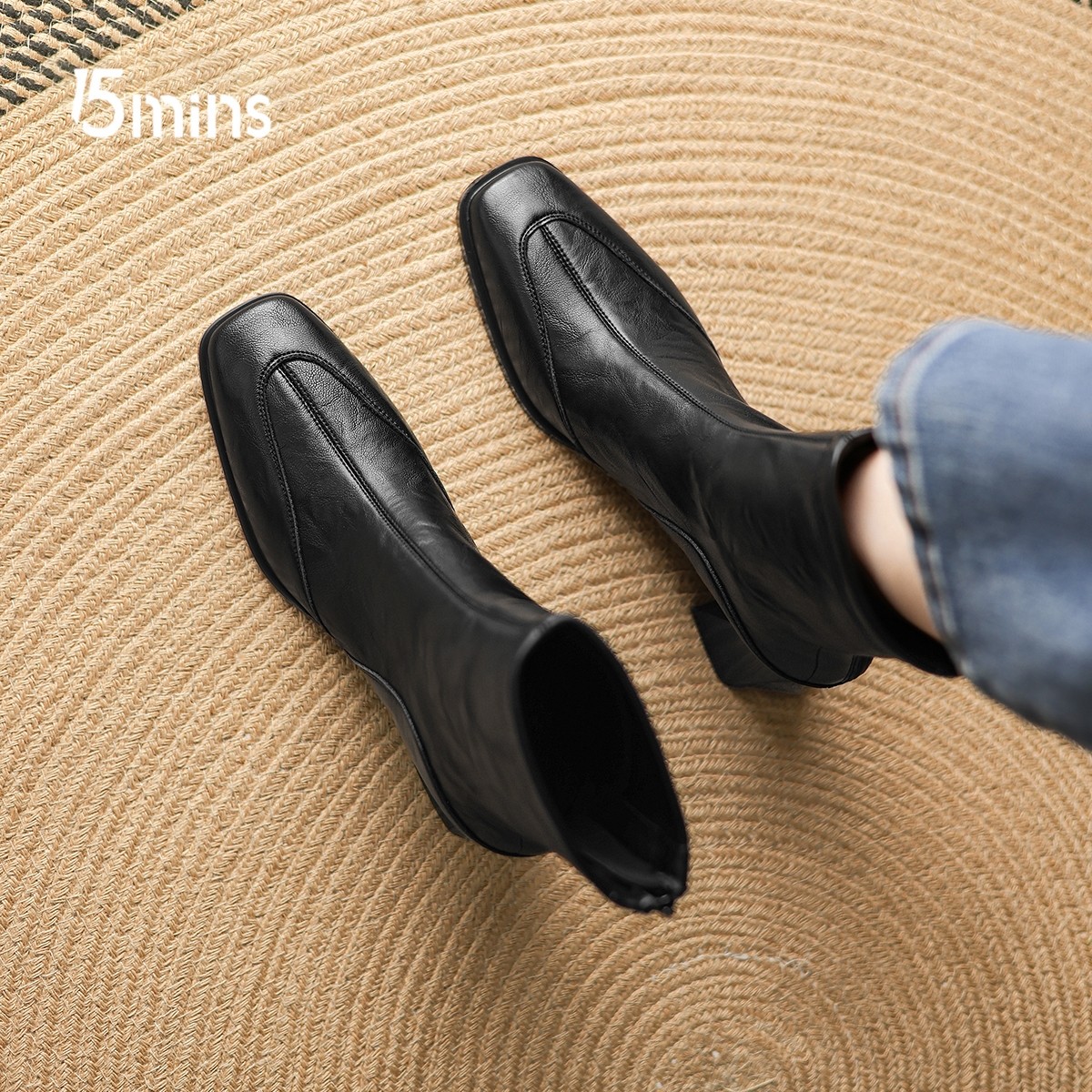 15mins方头增高时装短靴女马丁靴