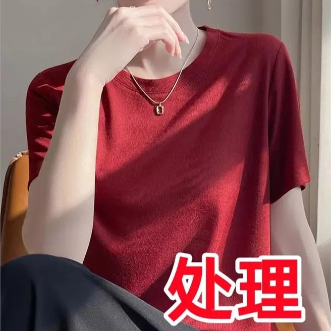 【特价清仓】莱赛尔天丝短袖t恤女2025新款夏季宽松纯色圆领上衣