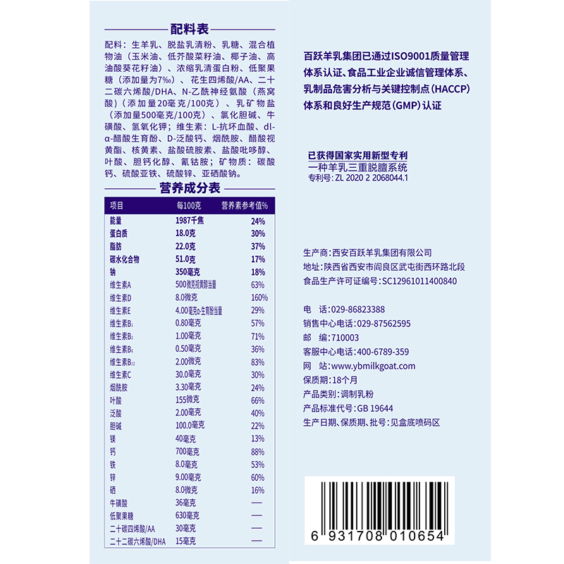 御宝臻启高钙高锌儿童成长配方羊奶粉4段400g青少年学生DHA羊奶粉