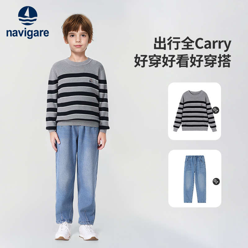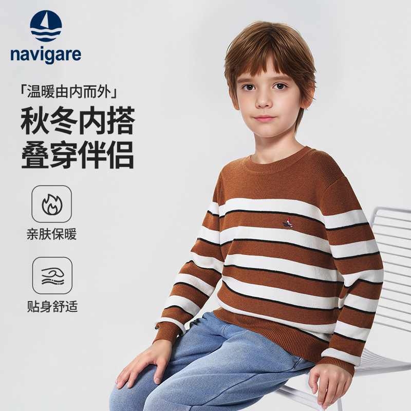 Navigare意大利小帆船羊毛衫男童毛衣秋冬款儿童针织衫套头上衣
