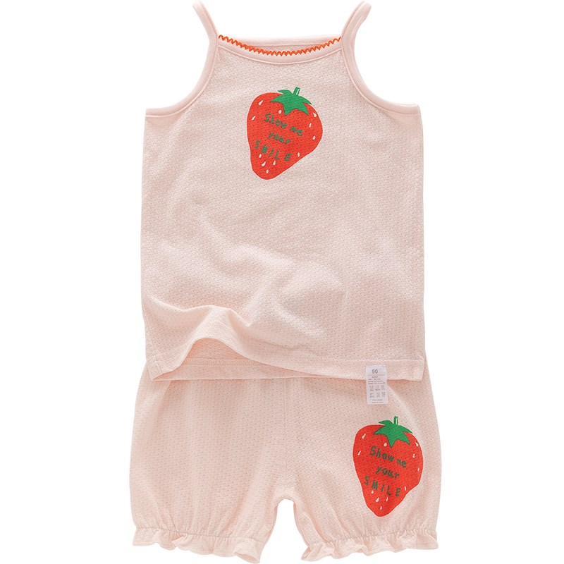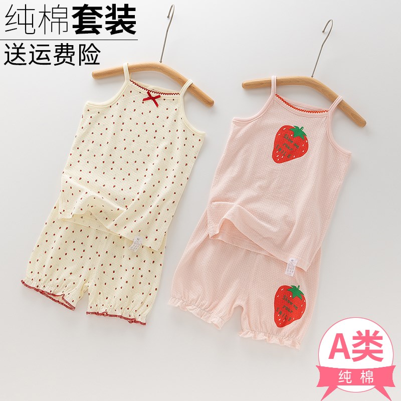 夏季女童孩透气吊带短裤2件套装纯棉外穿薄款女宝宝小背心灯笼裤