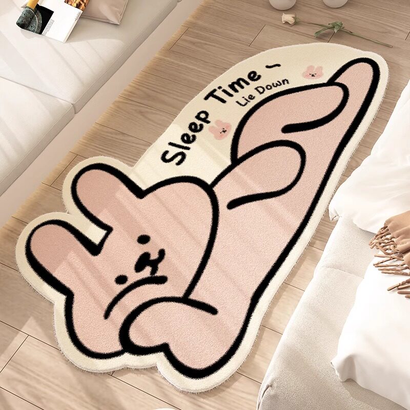 可爱地毯卧室加厚毛绒床边毯少女房间长条卡通小羊床前ins风地垫