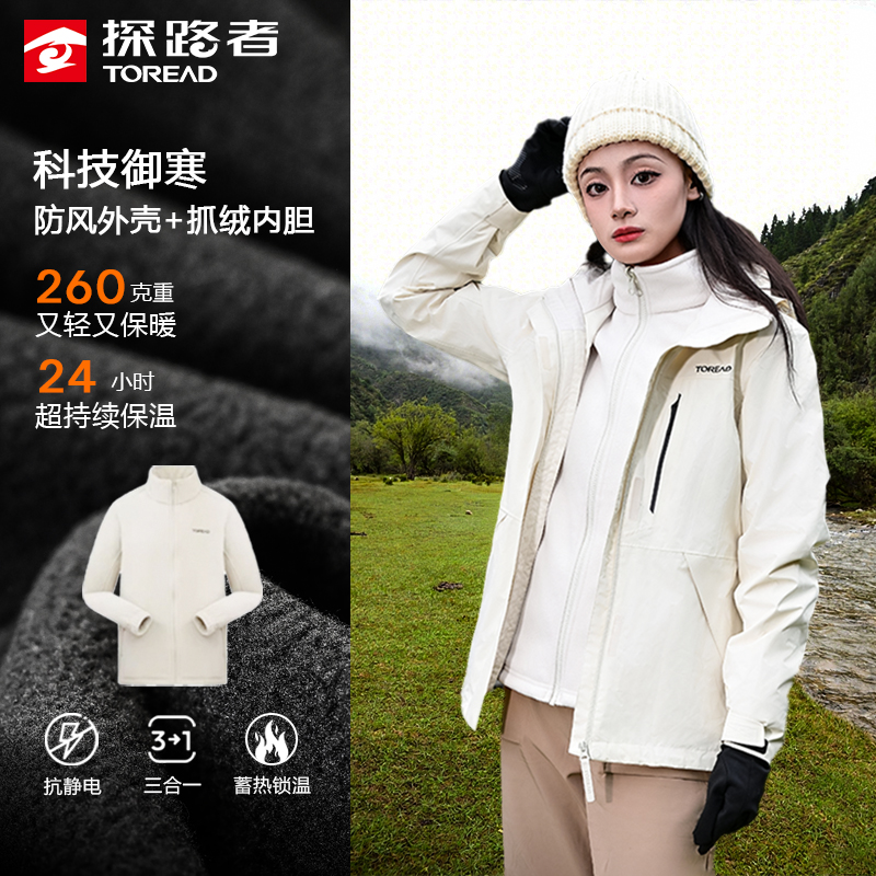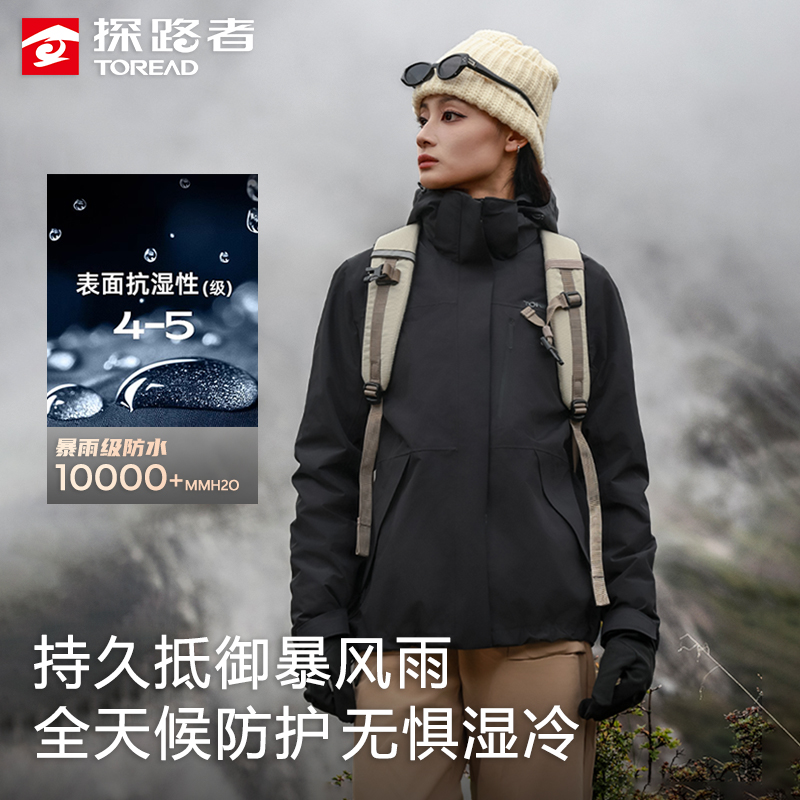 探路者冲锋衣女款秋冬新款户外三合一防水防风保暖徒步登山外套男