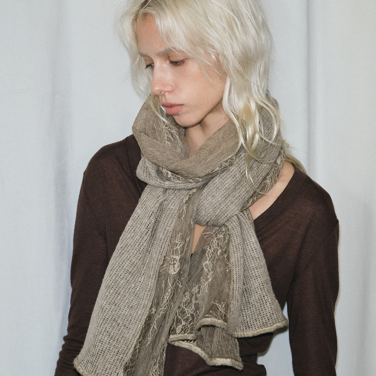 千金风蕾丝碎花围巾女秋冬气质款