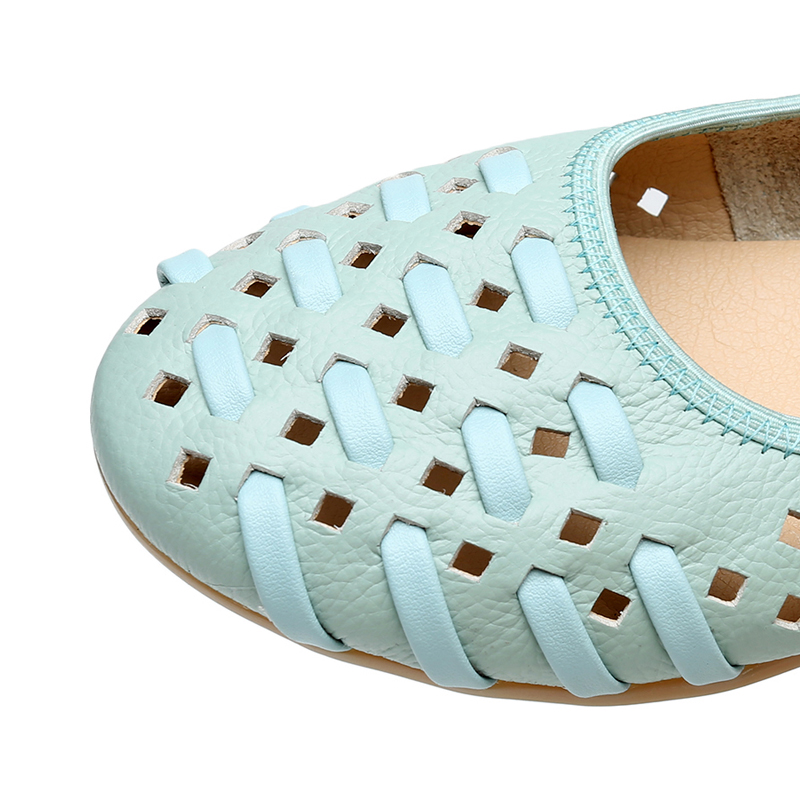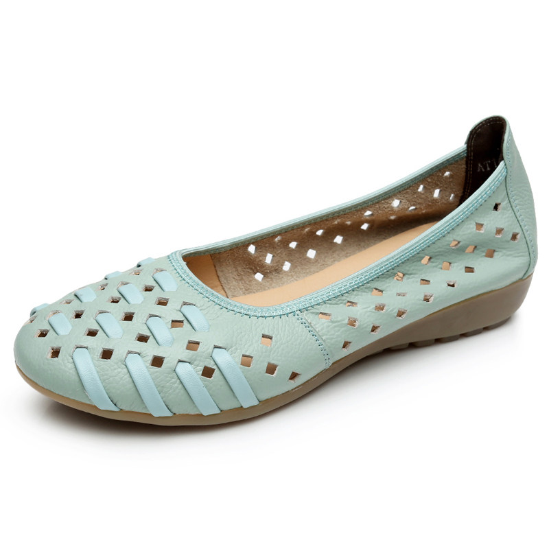 夏季透气镂空妈妈鞋真皮女平底牛筋软底防滑洞洞鞋中老年女式凉鞋