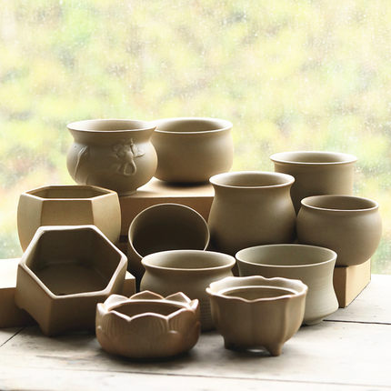 粗陶无釉原土烧制多肉花盆透气素烧古典简约盆栽清新透气肉肉植物