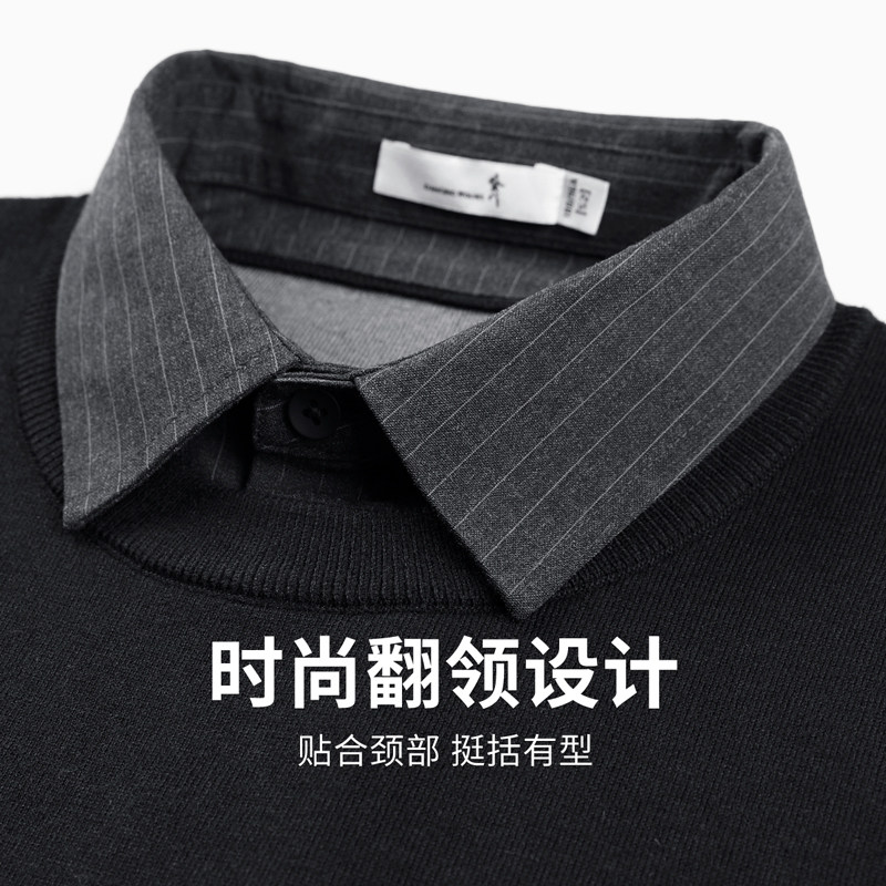 【撞色条纹】与狼共舞假两件毛衣男2025秋冬新款时尚翻领羊毛衫男