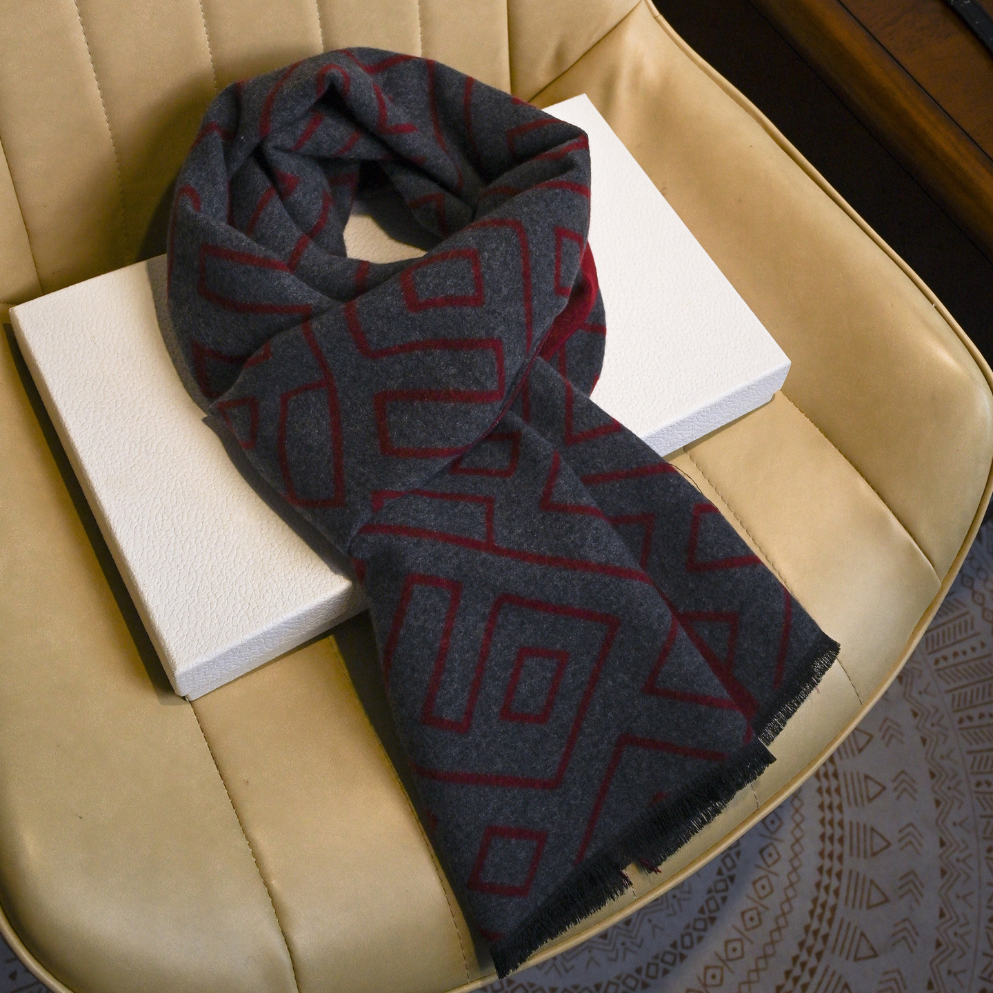 男士几何含羊毛围巾送爸爸保暖