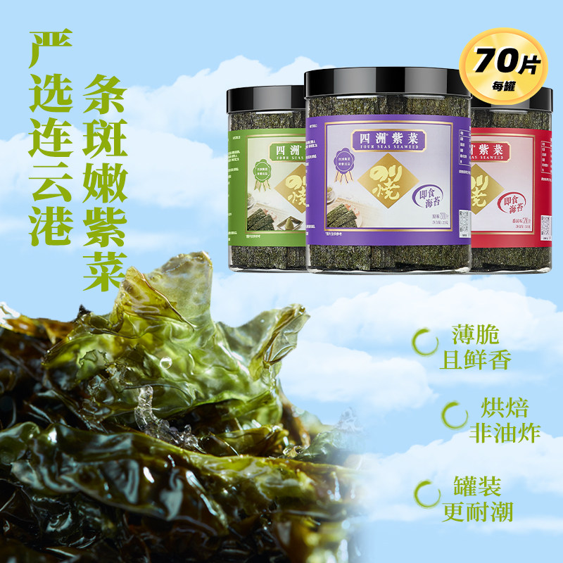 四洲紫菜罐装芥末味海苔片即食紫菜包饭材料寿司海苔休闲零食25g